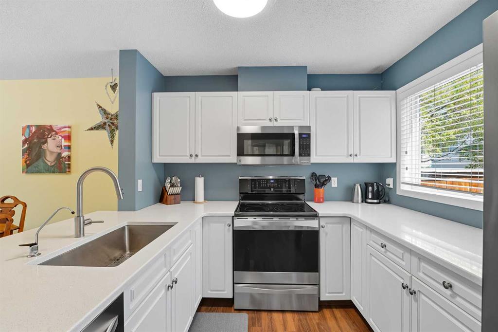 Welcome to 229 Prestwick Circle SE, a rare opportunity to own a fully finished 3 bedroom, 2.5 bathroom townhome with A/C and a single attached garage in the heart of Prestwick, McKenzie Towne. Offering 1,263 sq.ft. above grade and a total of 1,723.95 sq.ft. of developed living space including the basement, this home combines comfort, function, and style. Step inside to an open-concept main floor with beautiful laminate flooring and a bright living room with custom shutters. In between the living room and kitchen is a dining area spacious enough to accommodate a full-sized dining table, making it perfect for entertaining. The kitchen is the heart of the home, complete with quartz countertops, stainless steel appliances, plenty of cabinet space, and a large stainless sink. The main floor also includes a convenient 2-piece bathroom. Just off the kitchen and living area, you’ll find access to your own backyard, ideal for summer BBQs or enjoying a quiet morning coffee. Upstairs, the primary bedroom sits on its own private landing with room for a king-sized bed and more. It includes a massive walk-in closet and a private 3-piece ensuite. A few steps up are two more generously sized bedrooms, one with another walk-in closet, along with a full 4-piece guest bathroom. The basement is fully finished, offering a large rec space perfect for family movie nights or game nights. You’ll also find a versatile flex room with laundry and utilities, which could easily serve as a gym, office, or hobby space. This home stands out not only for its rare 3 bedroom, 2.5 bathroom layout but also for its positioning in the complex. Unlike many townhomes, it’s not tucked away, giving it a welcoming curb appeal and a true single-family feel. All of this is located just minutes from schools, parks, playgrounds, and the many shops and restaurants in McKenzie Towne. Prestwick is known for its walkable streets, vibrant community atmosphere, and access to transit and major routes, making it an ideal place to call home.