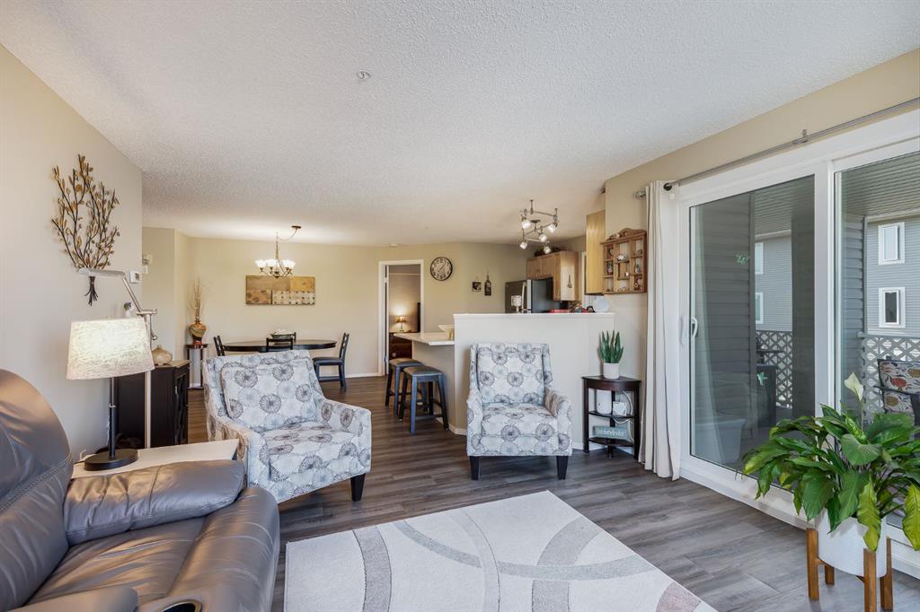 Rare Opportunity to own this CORNER CONDO with WRAP AROUND BALCONY that has its own STORAGE ROOM!!! Don't miss this Gorgeous Condo that exudes Pride of Ownership! This Beautiful Condo offers Extra Windows that are Brand New throughout, Newer Luxury Vinyl Plank Flooring, Kitchen Updates, and more. When you arrive you will notice the Foyer Entrance that allows plenty of space to Welcome your Guests, and the Laminate Flooring making this a No Carpet Home. The Living Room is bathed in light from the Oversized Window and Balcony access with Gorgeous views of the Greenspace. The Kitchen has been updated with Stainless Steel Appliances, an Open Island that provides extra Counterspace and Island Seating, Lovely Cabinetry, and an Extra Window over the Sink for more natural light. The Dining area can host a Larger Table. The Primary Bedroom is 11'3" x 14'1 and can hold a King Bed. The Walk through Closet leads to the 3 Pc Ensuite with a Shower Stall. The 2nd Bedroom is 10'10" x 10'3" and is close to the 4 pc Main Bathroom. The Condo also has a Storage Room inside the Unit, In-Suite Laundry and the MASSIVE 20'4" x 11'4" Wrap Around Balcony with its own Storage Room making it a bonus to have your extra items so closeby. The Parking Stall #19 is right outside the Bldg 2000 door for extra convenience. The CONDO FEES INCLUDE ALL UTILITIES. This Complex is well Managed. No Dogs Permitted. Close to Shopping, Grocery, Dining, Transportation, and is easy to access facilities like the New Library. Make sure to see this Beautiful Home... You will be impressed.