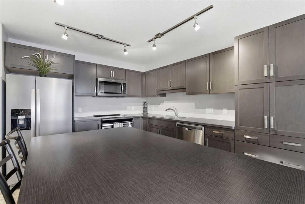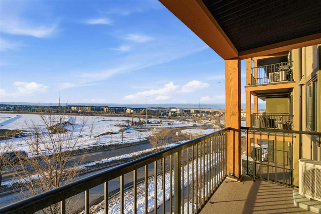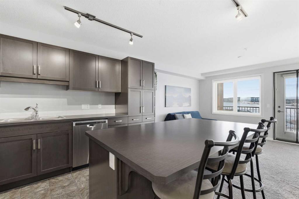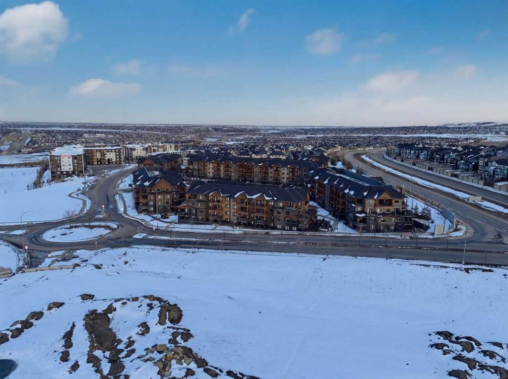 Welcome to The Pinnacle at Kincora, an 18+ building in one of NW Calgary’s most sought-after communities. This beautifully maintained 1 bedroom, 1 bathroom unit features a rarely available floorplan that doesn’t come to market often. Step inside to a bright, open-concept layout with a fully equipped kitchen showcasing stainless steel appliances, ample cabinetry, and a large breakfast bar overlooking the spacious living area—perfect for everyday living or entertaining. The living room extends onto an oversized covered balcony with a gas hookup, ideal for year-round BBQs and relaxing evenings. The generous primary bedroom offers a walk-in closet with direct access to the 4-piece bathroom, creating a functional and private retreat. Additional highlights include in-suite laundry, titled heated underground parking, and a separate storage locker. Enjoy unbeatable convenience just across Symons Valley Parkway from Sage Hill Shopping Plaza, featuring everything from groceries and restaurants to banking and fitness. Surrounded by parks, ponds, and scenic pathways, and with quick access to Shaganappi Trail, Stoney Trail, and transit, this location truly has it all.