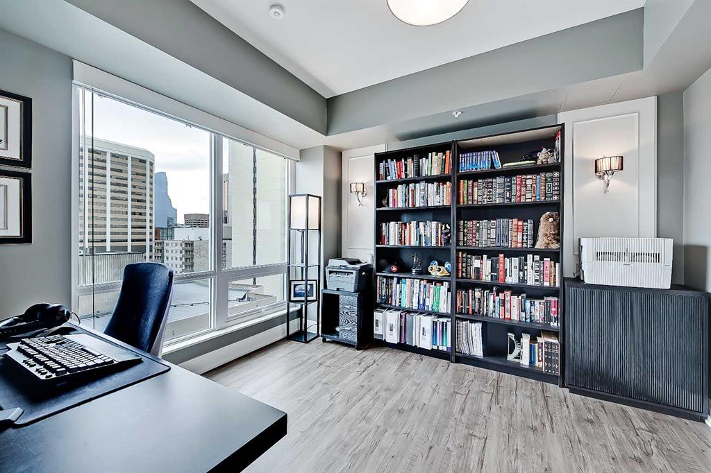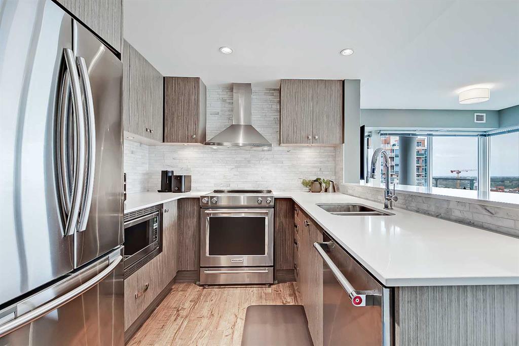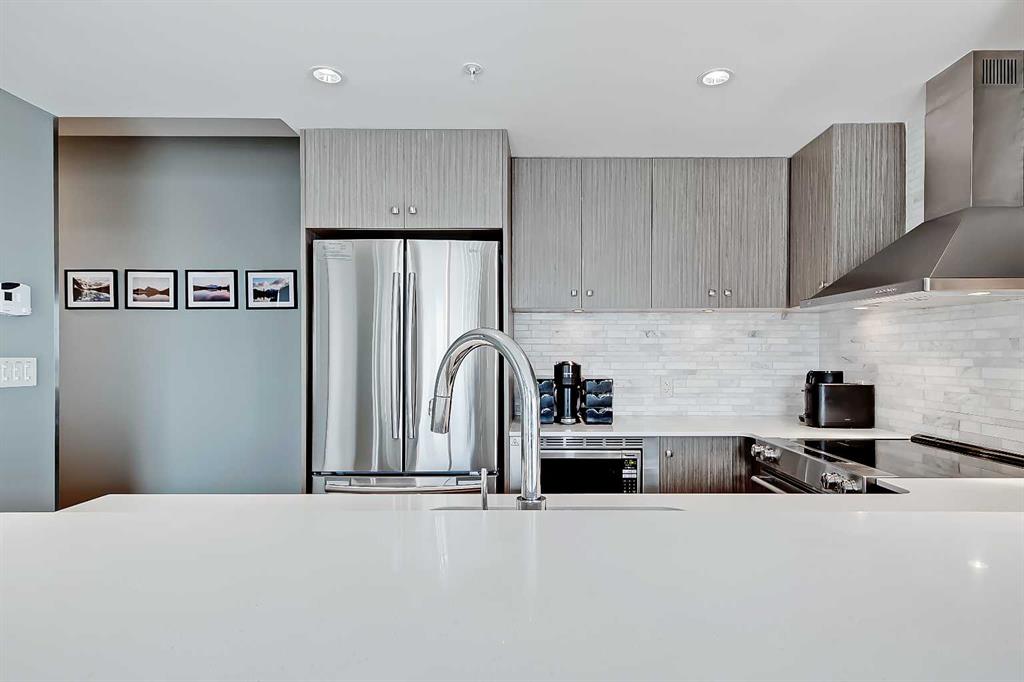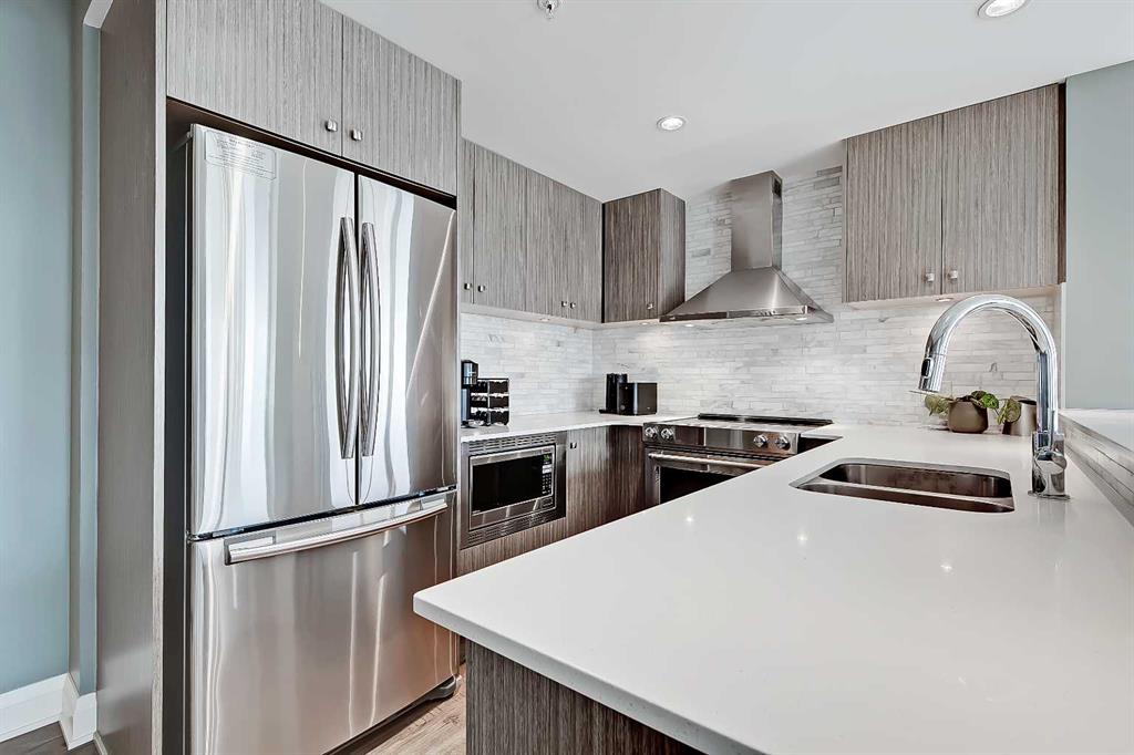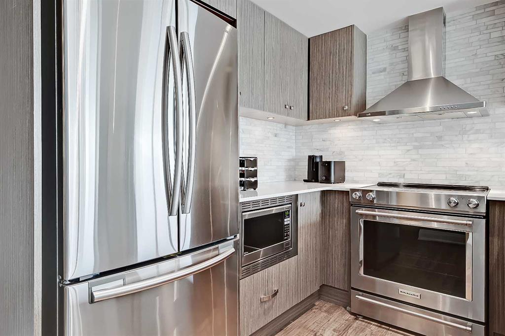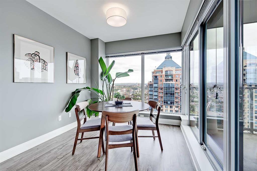 *VISIT MULTIMEDIA LINK FOR FULL DETAILS INCLUDING IMMERSIVE 360 VT & FLOORPLANS!** Wow, check out this 2 bed & den/2bath NE CORNER UNIT with PHENOMENAL RIVER & CITY VIEWS! There are only 4 floors in the upscale Vogue building that were specially customized for Bedouin Suites, and this is one of them! EXCLUSIVE ‘BEDOUIN’ FEATURES include upgraded hallways and common areas, as well as INCREDIBLE UNIT UPGRADES like upgraded appliances & lighting including dimmers throughout, custom bedroom panelling including convenience plugs and sconce lighting, upgraded bathrooms with tile wainscoting and glass shower doors, built-in closet organizers throughout, built-in walnut entertainment units, a Smart Sensor energy management system for the eco-minded buyer and MORE! Highly upgraded, this open-concept condo features floor-to-ceiling windows and upgraded luxury vinyl plank flooring throughout. Contemporary woodgrain cabinets line the kitchen w/ modern hardware & under cabinet lighting, quartz counters, a marble-style tile backsplash, dual basin undermount S/S sink, & upgraded stainless steel appliances, including a chimney-style hoodfan. Breakfast bar seating adds a casual dining option, or sit down for meals in the dining room with 2x walls of windows. The open main living area also features floor-to-ceiling windows and an extensive balcony w/ gas line for a BBQ & with the most stunning views of downtown Calgary and the Bow River. A split floorplan is great for privacy between the bedrooms. The large primary suite features large windows w/ panoramic views, custom paneling with sconce lighting and convenince plugs, a generous closet w/ built-in organizers, & a 5-pc ensuite w/ tile flooring, extended modern vanity with dual undermount sinks, modern faucets, quartz countertops, tile backsplash, & fully tiled tub/shower w/ upgraded glass door. The 2nd bedroom features a generous sized closet & large windows w/ panoramic views. It has quick access to the main 3-pc bath w/ tile floors & an oversized glass shower w/ full height tile. Complete w/ central AC, in-suite laundry, titled indoor parking & a private storage locker, and 3 mounted TVs included! VOGUE is a high-end building w/ executive amenities including a gorgeous lobby, full-time concierge, fitness room, games room, large party room w/ kitchen, owners lounge, meeting room, and more. Surrounded by parks, transit, the LRT, shopping & more, & within easy walking distance to the downtown core & all Kensington shops & services – this location offers the best urban lifestyle in the Downtown Commercial Core! ATTENTION INVESTORS - THIS UNIT IS TENANT OCCUPIED @ $2900/MONTH UNTIL MAY 31, 2026 AND THE TENANT WOULD BE WILLING TO STAY LONGER IF WANTED. *Multiple Units & Floorplans Available in this Building - Visit Multimedia Links for Full Details!*