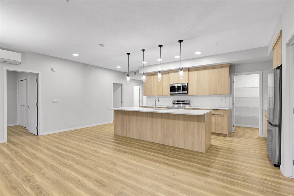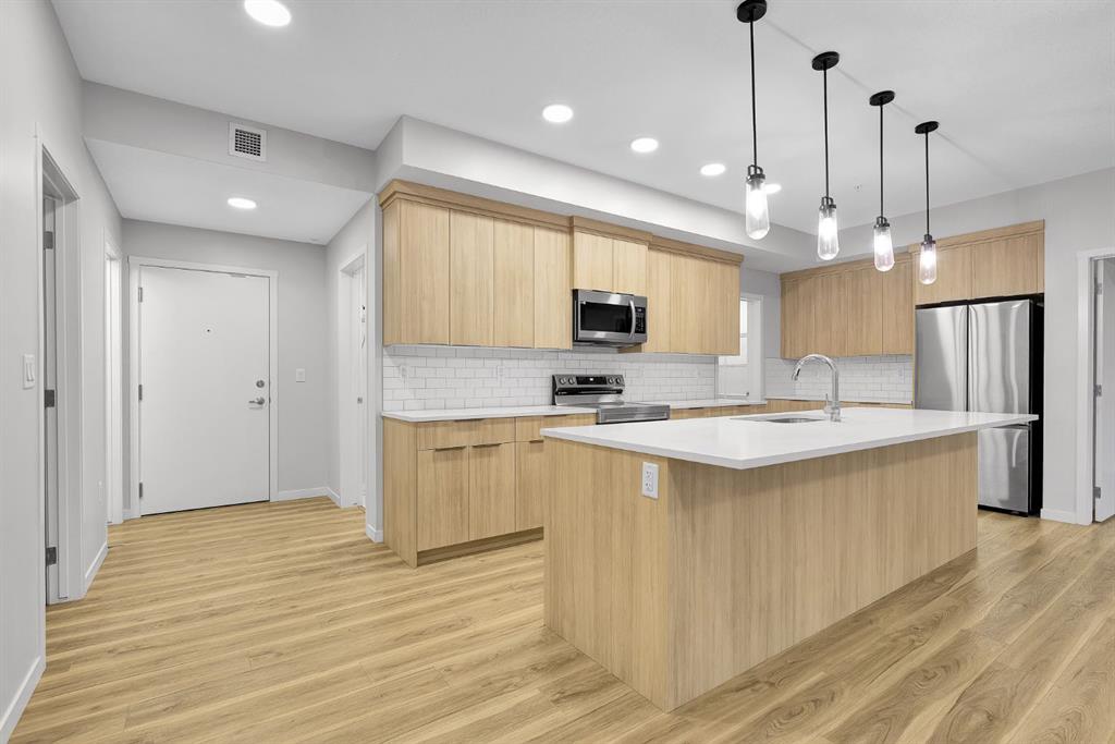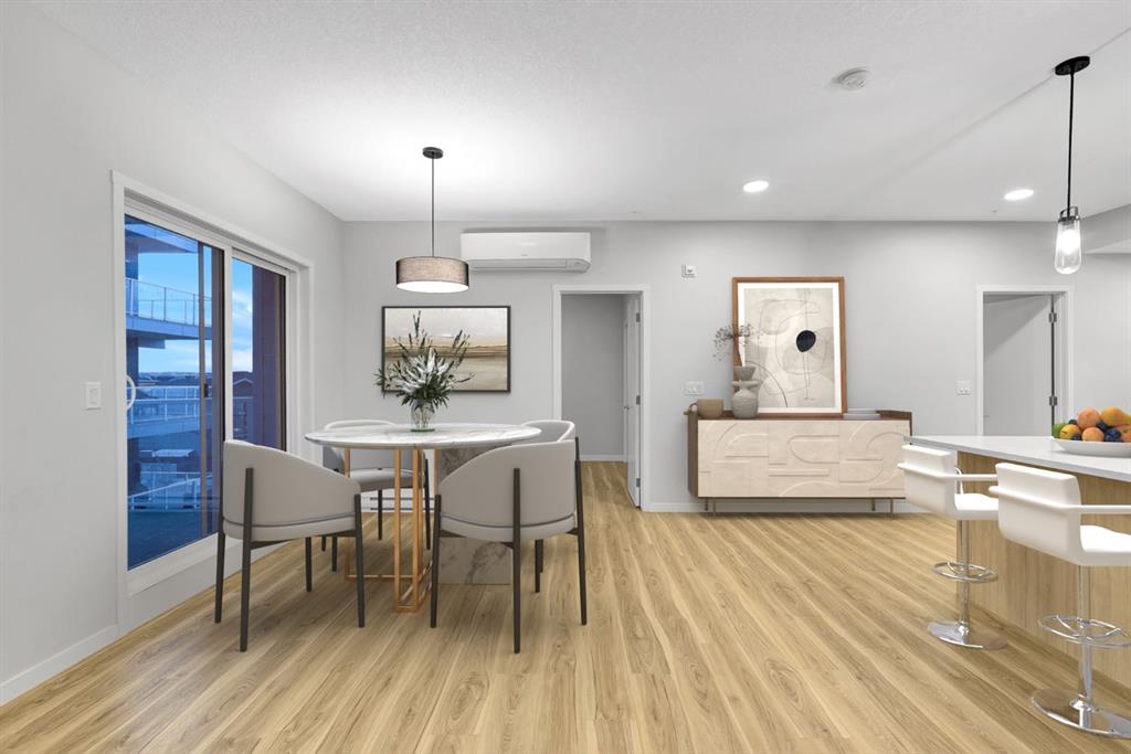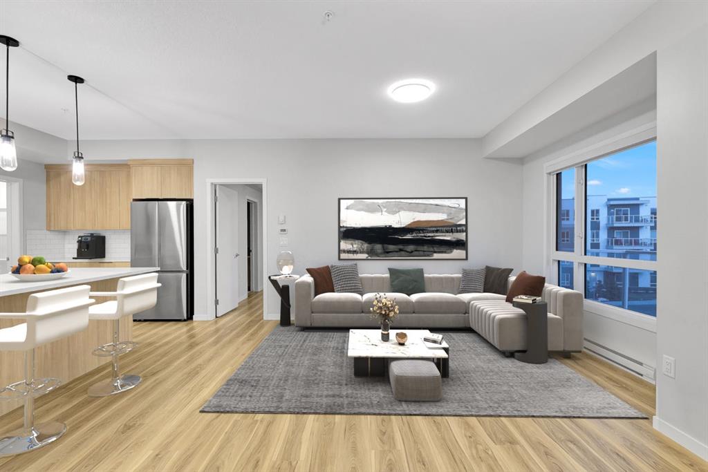 Discover life at Seton Summit, one of Calgary’s most desirable master-planned communities by Cedarglen Living. This beautifully appointed third-floor residence offers three bedrooms and two full bathrooms within 1,189 square feet of intelligently planned living space (1,269 sq.ft. builder size). The open layout is enhanced by 9-foot knockdown ceilings, luxury vinyl plank flooring, and an abundance of natural light throughout.