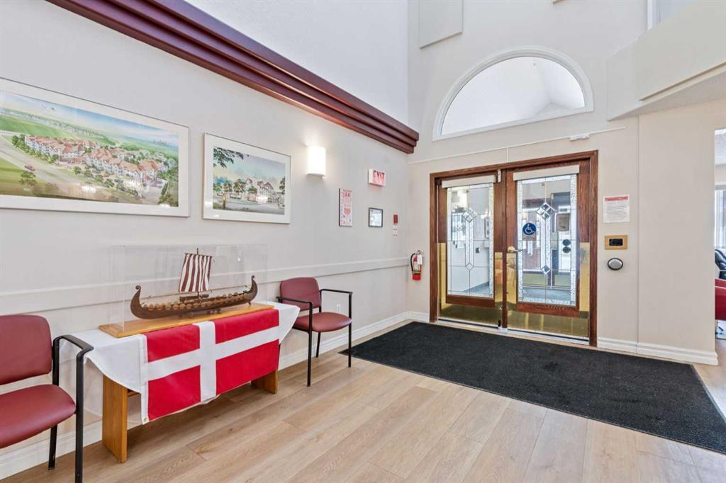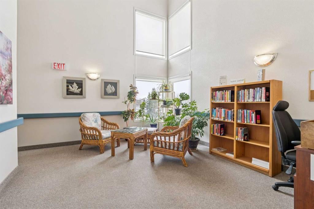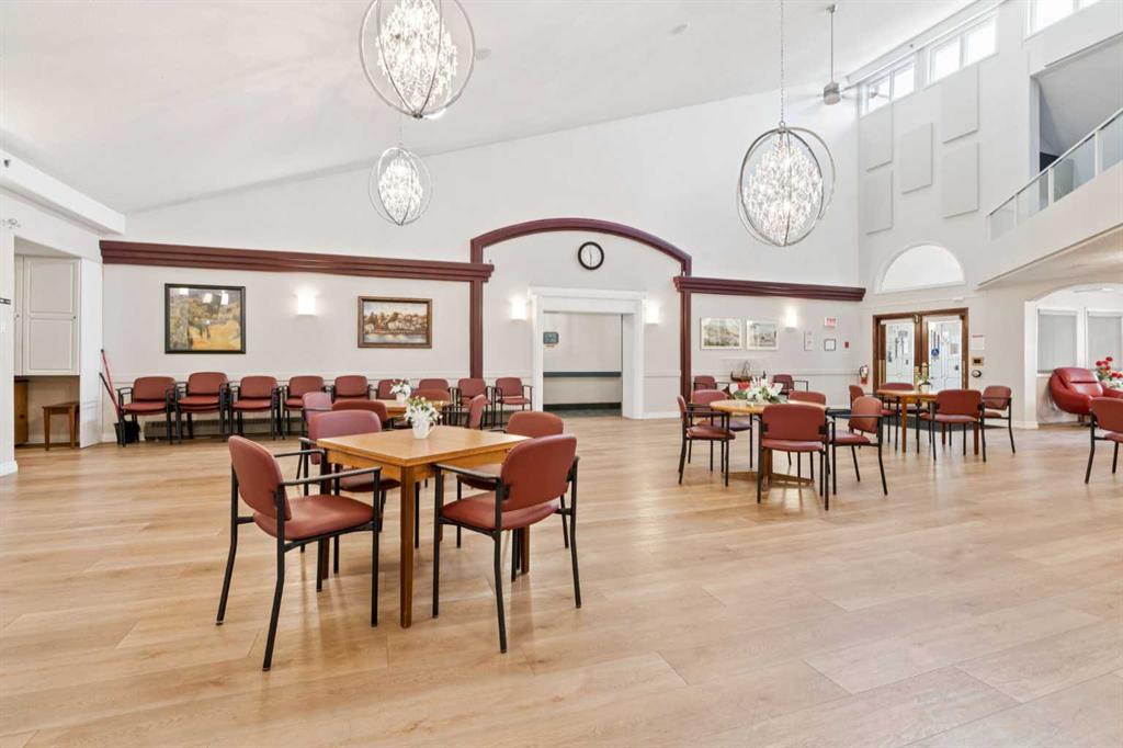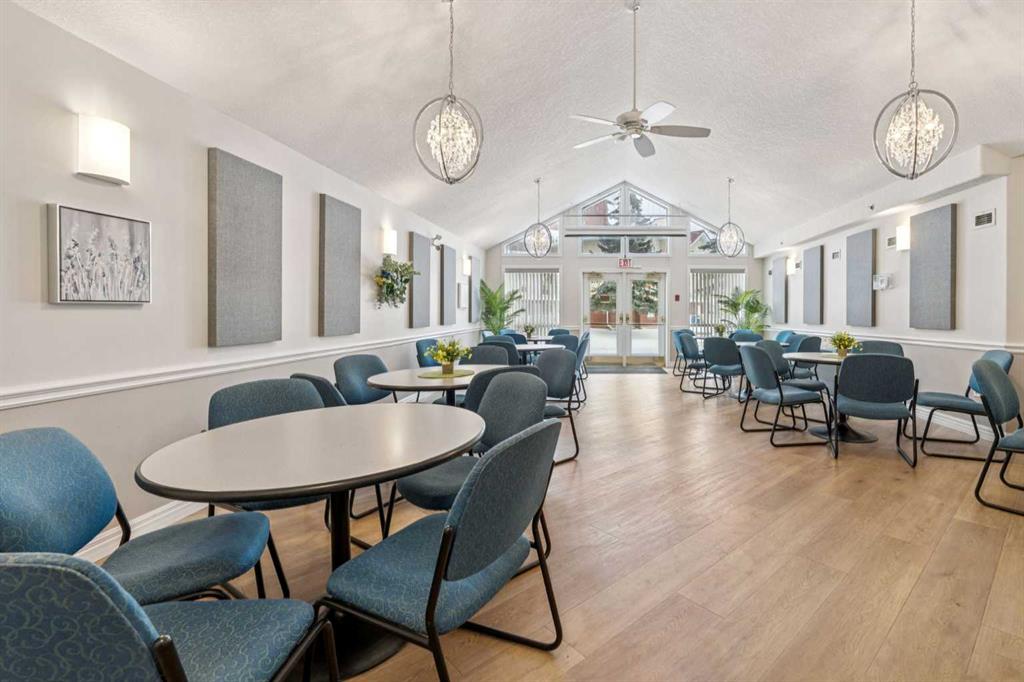 Retire your Cares - NOT your Dreams! Immaculate TOP FLOOR 2 Bedroom/2 Bath Condo with TREED Courtyard Views, AMAZING In-House Amenities & Numerous UPDATES throughout! Stylish Modern Kitchen - QUARTZ Counters, Crisp White & Blue Cabinetry, Stainless Steel Fridge & Dishwasher & Convenient Side PANTRY. Flexible Open Living & Dining Area with lots of natural light - Generous Master with WALK-THRU Closets & Ensuite bath, Spacious 2nd Bedroom perfect for Guests or a Computer/Sewing/Craft Room, 2nd full Bath with “Easy Access” Shower & Private Balcony for relaxing morning coffees with Sunrise views. There’s a large Laundry & Storage Room with newer washer & dryer Plus an X-TRA Storage Locker in your UNDERGROUND parking stall. How’s your SOCIAL calendar? Dana Village offers daily activities - fitness classes, movie nights, potluck dinners, weekly shopping outings, game nights & a “HELPING HANDS” committee to assist owners with small daily chores, along with exceptional SITE FACILITIES - Fitness, Billiards, & Puzzle areas, Woodworking Shop & even a Car Wash Bay - all accessible WITHOUT going outside. SUPERIOR complex construction focused on SAFETY & SECURITY includes 5 elevators, security doors & low maintenance fire retardant materials - Concrete Tile roof, Stucco exterior & fire suppression system with sprinklers & speakers. 55+ AGE Restricted, Non-Smoking complex & 1 cat is permitted with Board Approval. CENTRAL LOCATION with Easy Access to Transit & LRT, Shopping, Downtown & the Mountains too. Those who say “You can’t buy happiness” haven’t been to Dana Village!