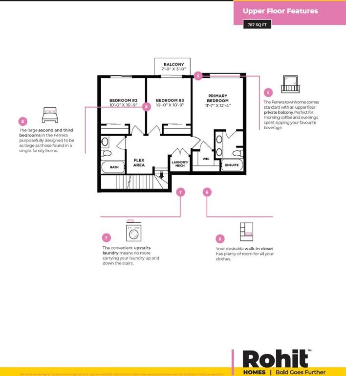 *Save 20k with grand opening pricing - limited time only* Brand new the 'Ferrera' townhome plan by Rohit Homes, with unmatched design interiors and striking exteriors to create elevated living. Featuring nearly 1500 sq ft, 3 bed / 2.5 bath + garage. Located in the desirable NW Calgary community 'Sage Hill' - with a plethora of green spaces, amenities hub, excellent road access & schools nearby. Introducing the newest development by Rohit Homes - "SAGE HILL WEST". Step inside to your modern open plan, with the main floor connecting the living space, dining and kitchen seamlessly to create a one of a kind space to enjoy. The fully-curated designs bring an unparalleled level of style to townhome living, with luxurious finishes including tall 9ft ceiling on main floor, Distinctive bespoke light fixtures, LVP floor on main. The kitchen features: designer cabinets with crown molding topping the upper cabinets, elegant quartz coutners, opulent tile backsplash, large island with breakfast bar, plenty of storage, SS appliance package and so much more. There are large windows off the living space, leaving the place feel bright and airy, along with a balcony off the living space with BBQ gas line. Main floor is complete with half bath. Head upstairs to find 3 good sized bedrooms, along with a flex space, a shared full bath (bath/shower combo). The primary room having walk in closet, and a spa like ensuite with double vanity, toilet, bath/shower combo. The quality of finishes goes throughout this designer home, with the bathrooms having quartz counters as well. Stand out features include a second balcony off a bedroom in the upper quarters. To complete the upper level is laundry room with included washer/dryer! Ensuring all needs are met, there is also a single attached garage and A/C roughed in. Enjoy the convenience of low condo fees, with snow removal and landscaping included. At Rohit Homes, we know it’s not just about having a functional floor plan, it’s about having a space that you’re proud to show off. Each of our homes features a distinct look that is inspired by you - our customers. Built by a 4-time Home Builder of the Year with Peace-of-mind 1-2-5-10 year new home warranty. Unparalleled level to townhome living awaits at "SAGE HILL WEST" - book your unit at grand release pricing while it lasts.
