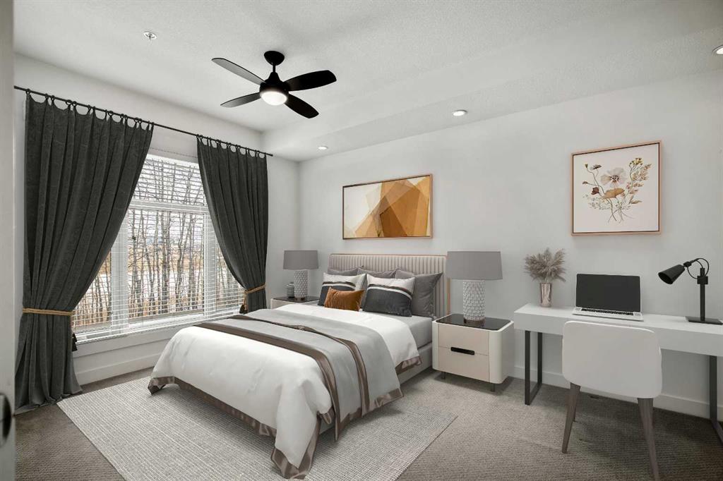 EXCEPTIONAL VALUE UNDER $320,000 l PRIVATE PATIO l AMAZING LOCATION/WALKING DISTANCE TO SAFEWAY l Welcome to Valmont at Aspen Stone, nestled in the heart of highly desirable Aspen Woods. This beautifully maintained ground level ,1 bedroom, 1 bathroom condo offers 673 sq ft of bright, functional living space with a modern, open-concept design. Large windows fill the home with natural light and overlook a peaceful grove of aspen trees, creating a private, serene setting. Enjoy the comfort of in-floor heating throughout. The contemporary kitchen features granite countertops, stainless steel appliances, refinished cabinetry, a new microwave, and a convenient breakfast bar, perfect for casual dining or entertaining. The spacious bedroom comfortably fits a king sized bed with additional room for a desk or sitting area, and includes a ceiling fan with light and large closet space. The well appointed 4-piece bathroom showcases a tiled tub surround. Additional highlights include in-suite laundry, updated light fixtures, and a private patio backing onto tranquil green space where you may spot local wildlife. This unit comes complete with secure underground parking (ideally located near the unit), separate storage, and intercom access for visitors. Residents enjoy excellent building amenities including a fitness centre (2nd floor), bike storage, elevators, and rentable guest suites. Condo fees include heat, water, and sewer. Ideally situated within walking distance to Aspen Landing Shopping Centre, restaurants, and everyday amenities, plus close to parks, pathways, transit, and top-rated schools. An exceptional opportunity to own in one of Calgary’s most prestigious communities. Quick possession available.
