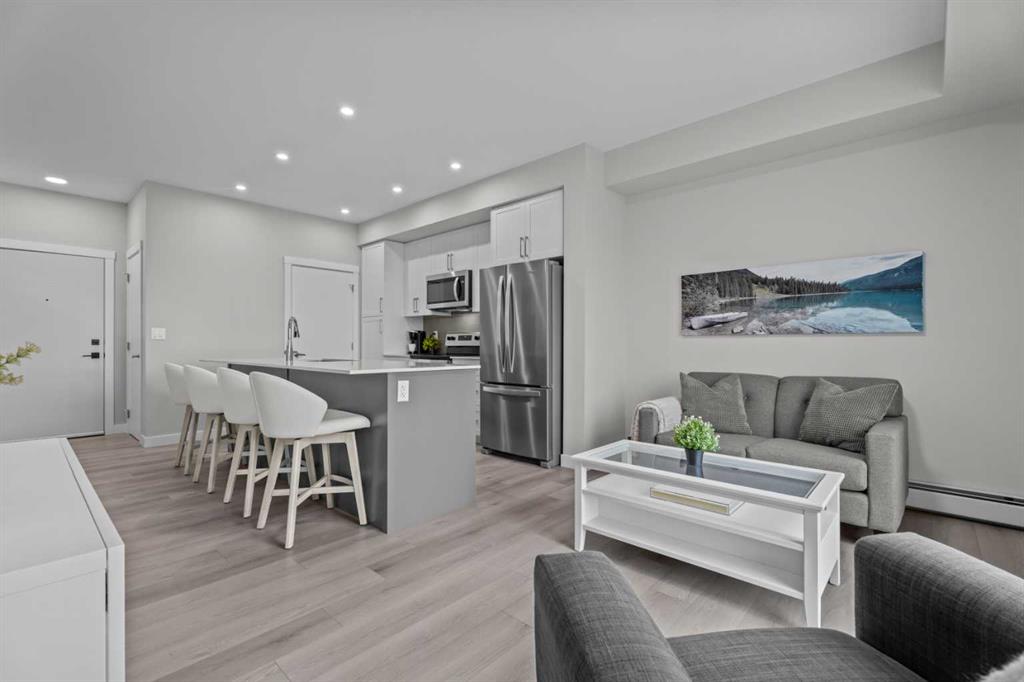 Welcome to this gorgeous, upgraded 2 bedroom, 2 bathroom TOP FLOOR condo in the desirable Lawrie Park building in Wedderburn, Okotoks. Still under warranty and loaded with thoughtful upgrades, this home blends comfort, function, and style.