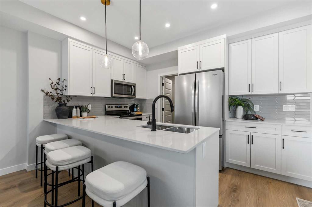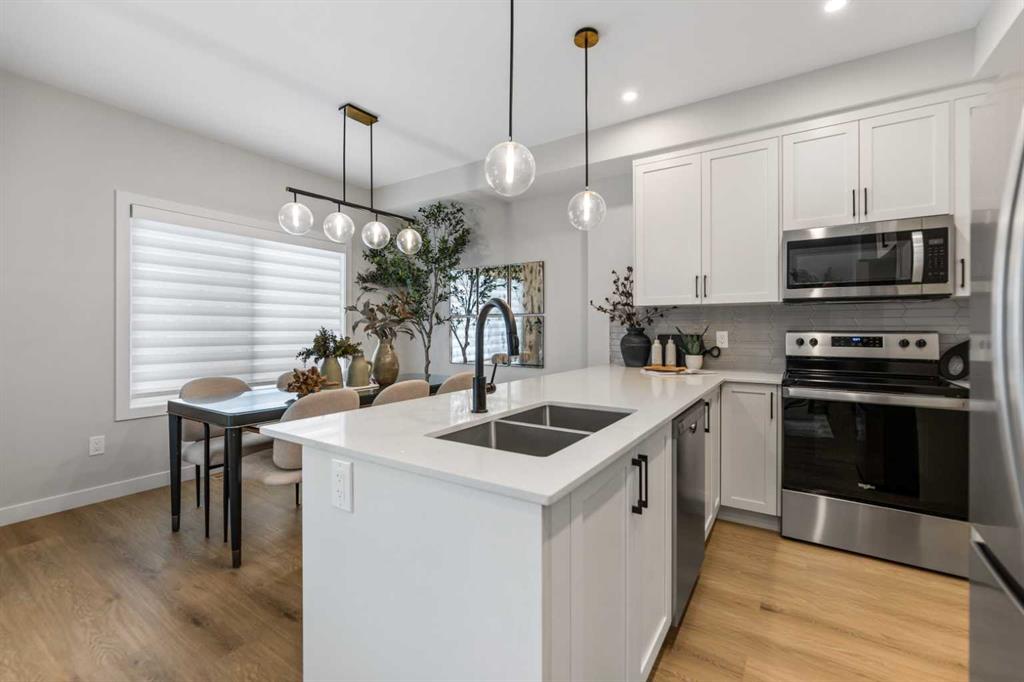 Welcome to this Brand new home built by award winning builder Prominent Homes in the Brand New Community of Waterford! This Beautiful END Unit townhouse has the largest lot and has NO CONDO FEES and features 3 Bedrooms and 2 and half Bathrooms, Air Conditioning, Double Attached Garage and a separate entrance to the basement. THE MAIN floor also features a Gorgeous Kitchen that has an Island, Dining Nook, and Living Room. THE UPPER floor has 3 Bedrooms including a Large Primary Bedroom with a walk in closet and 4 piece Ensuite and Laundry It also has Alberta New Home Warranty. This is a Prominent Homes Showhome and with a lease back of 6-9 months with guaranteed Rent! Call to book your private showing today!