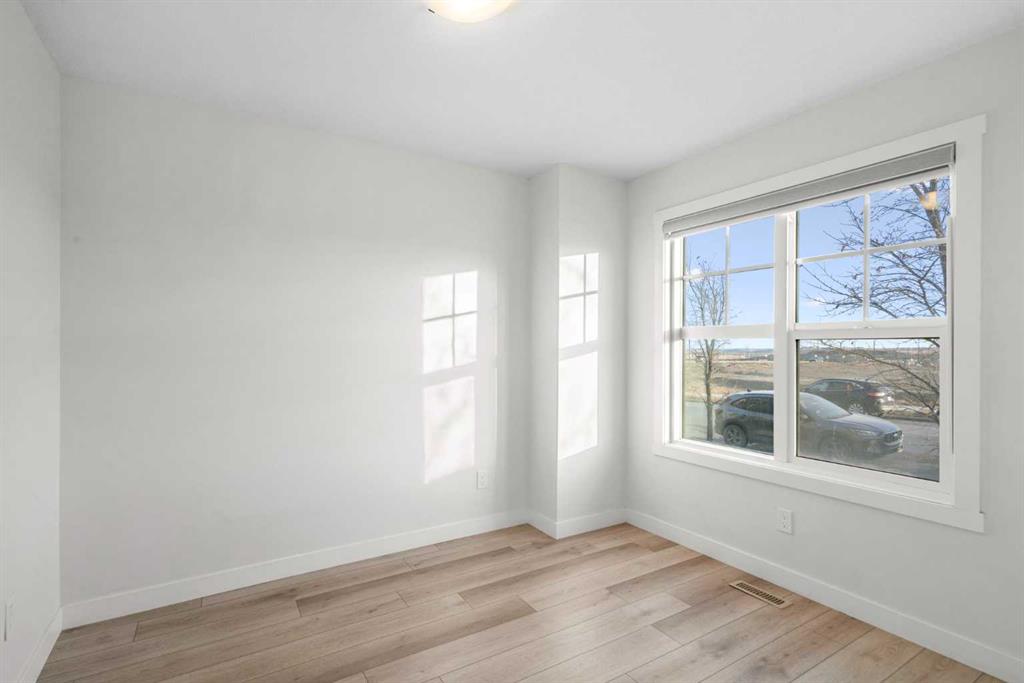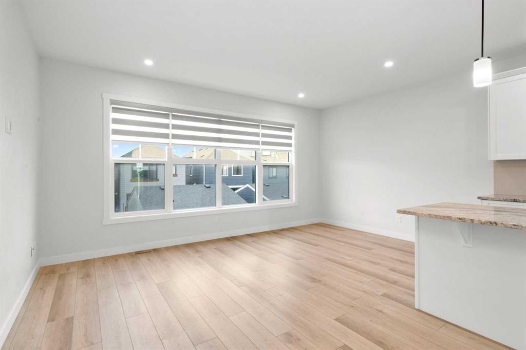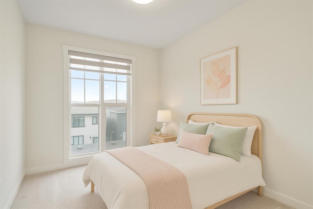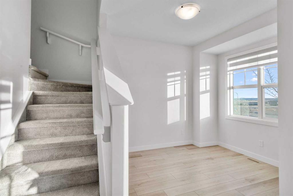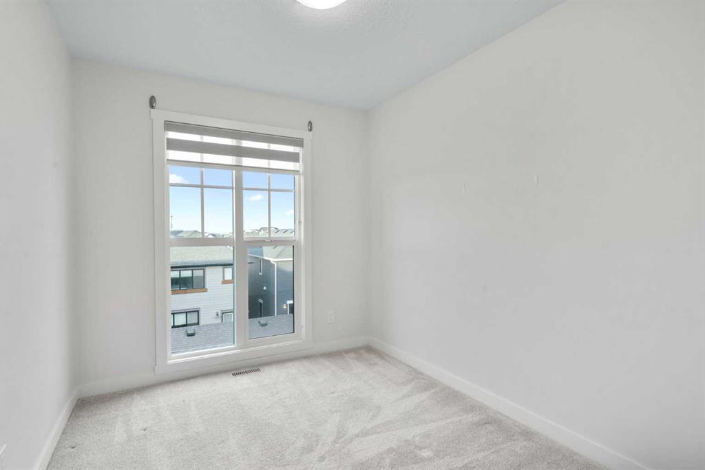 Welcome to Alpine Park, one of Calgary’s most thoughtfully designed new communities where walkability, green spaces, and a strong sense of connection come together. This end-unit, 3-storey townhouse stands out with no condo fees, extra windows, and bright, thoughtfully planned living spaces. The main level features a versatile den/flex space, perfect for a home office, gym, or creative studio, along with access to the double attached garage. There is also a lower mechanical/storage basement ideal for seasonal items or organization. Up on the second level, you’ll find the heart of the home. 9 ft ceilings, large south-facing windows, and luxury vinyl plank flooring create a warm and inviting atmosphere. The kitchen is beautifully appointed with stone countertops, stainless steel appliances, electric stove, built-in microwave, hood fan, and a deep pantry offering exceptional storage. The open-concept living and dining areas provide ample room for everyday living and entertaining. Just off the kitchen is an additional living area/flex room, perfect as a reading nook, kids’ zone, second office, or lounge space, with access to a private balcony for morning coffee or quiet evenings. A convenient 2-piece powder room completes this floor. The top level is dedicated to rest and comfort with three well-sized bedrooms, including a spacious primary suite with a walk-in closet and 4-piece ensuite. The two additional bedrooms share a full 4-piece bathroom, and the laundry room is a full room, offering storage and functionality right where you need it. Outside your door, Alpine Park offers beautiful architecture, walkable pathways, future schools & village-style retail, and stunning green spaces. Plus, enjoy unbeatable convenience with quick access to Stoney Trail, making it easy to get anywhere in the city, just minutes to Costco, Fish Creek Park, and major shopping & dining destinations. This is modern living with space to grow, flexibility to live your way, and no condo fees, a rare combination in one of Calgary’s fastest-growing communities.