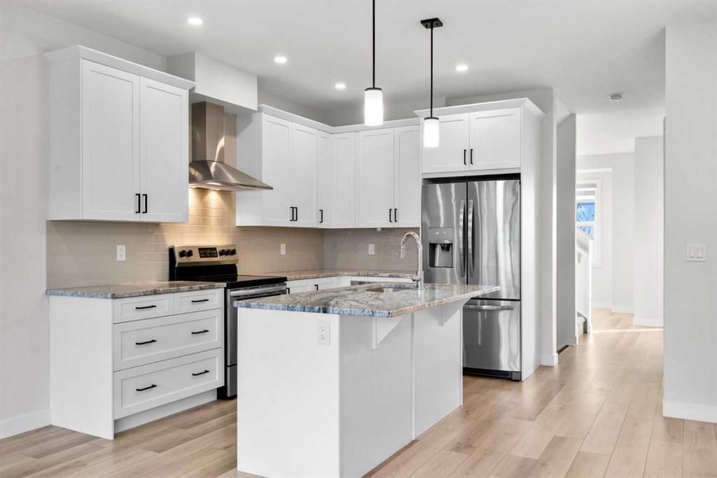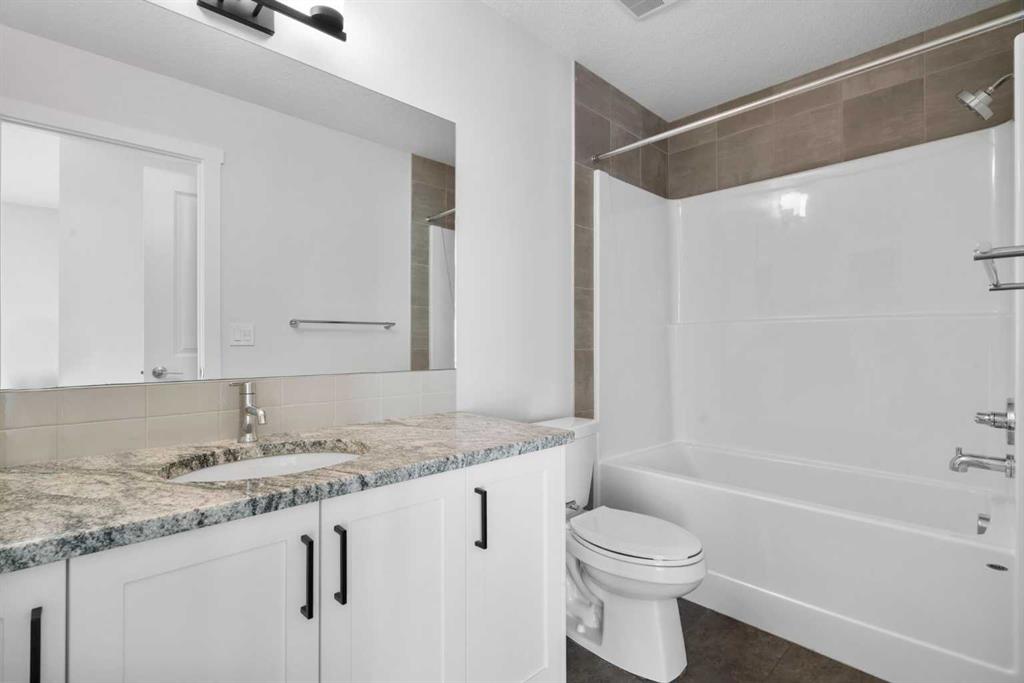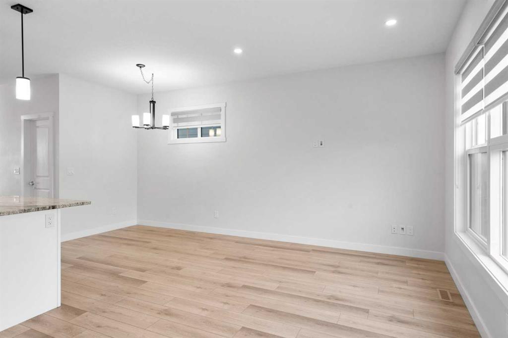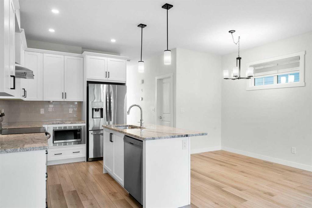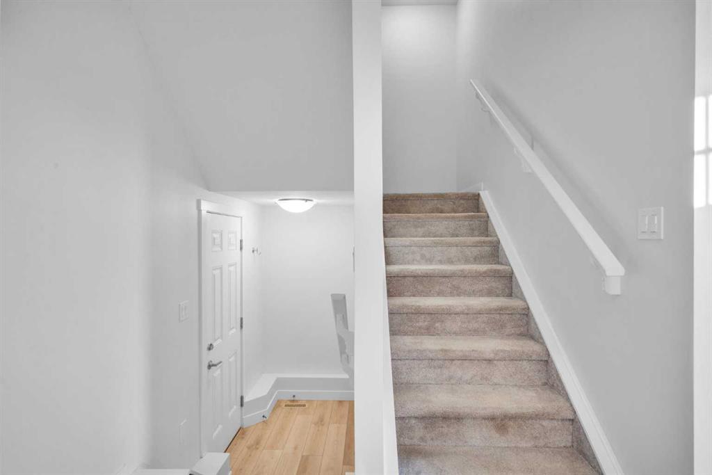 Welcome to Alpine Park, one of Calgary’s most thoughtfully designed new communities where walkability, green spaces, and a strong sense of connection come together. This end-unit, 3-storey townhouse stands out with no condo fees, extra windows, and bright, thoughtfully planned living spaces. The main level features a versatile den/flex space, perfect for a home office, gym, or creative studio, along with access to the double attached garage. There is also a lower mechanical/storage basement ideal for seasonal items or organization. Up on the second level, you’ll find the heart of the home. 9 ft ceilings, large south-facing windows, and luxury vinyl plank flooring create a warm and inviting atmosphere. The kitchen is beautifully appointed with stone countertops, stainless steel appliances, electric stove, built-in microwave, hood fan, and a deep pantry offering exceptional storage. The open-concept living and dining areas provide ample room for everyday living and entertaining. Just off the kitchen is an additional living area/flex room, perfect as a reading nook, kids’ zone, second office, or lounge space, with access to a private balcony for morning coffee or quiet evenings. A convenient 2-piece powder room completes this floor. The top level is dedicated to rest and comfort with three well-sized bedrooms, including a spacious primary suite with a walk-in closet and 4-piece ensuite. The two additional bedrooms share a full 4-piece bathroom, and the laundry room is a full room, offering storage and functionality right where you need it. Outside your door, Alpine Park offers beautiful architecture, walkable pathways, future schools & village-style retail, and stunning green spaces. Plus, enjoy unbeatable convenience with quick access to Stoney Trail, making it easy to get anywhere in the city, just minutes to Costco, Fish Creek Park, and major shopping & dining destinations. This is modern living with space to grow, flexibility to live your way, and no condo fees, a rare combination in one of Calgary’s fastest-growing communities.
