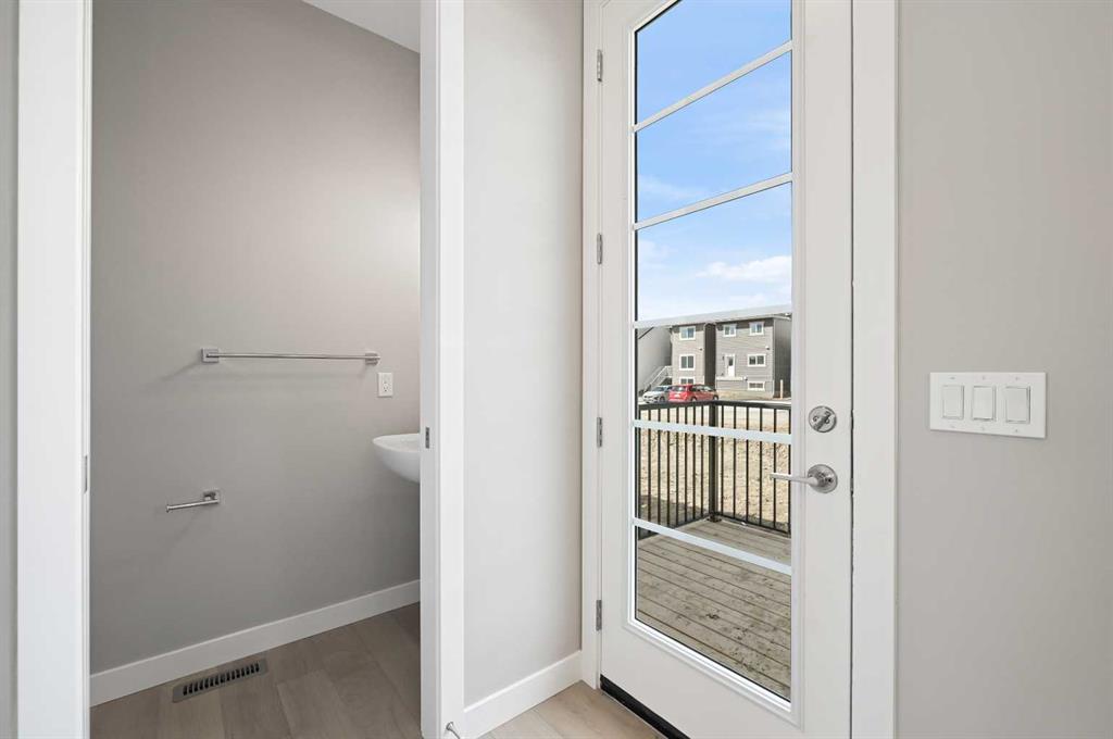 Public Remarks: IMMEDIATE POSSESSION. ,DOUBLE DETACHED GARAGE, DECK, FENCED AND LANDSCAPED, NO CONDO FEES. SOME PICTURES ARE OF SIMILAR MODEL, Welcome to the "St. Andrews" townhome, by Award winning, Master Builder, Douglas Homes Ltd. From the front covered porch, the entry opens onto the spacious great room with 9ft ceiling and gleaming hardwood floors throughout the main floor. The aspiring chef will appreciate the well planned "island" kitchen. From the upgraded 42 inch, soft close cabinets, to the gorgeous quartz countertops, everything is within easy reach. The sparkling stainless steel fridge, the glass top, self cleaning electric range, dishwasher, and over the range microwave/hoodfan are all just an arms length from the kitchen sink. Opposite side of the island, provides a convenient pantry, and desk with upper cabinet for all those recipe books you will collect. The spacious dining area features a large picture window looking out upon the back yard with room for the kids to play, with a rear entry door to the deck for those summer bbq's. Here also is a 2pc powder room for your guests convenience, and perhaps the kids hurried need. Upstairs includes 2 good sized secondary bedrooms, a 4pce bathroom with quartz vanity and tile floors, a convenient upstairs laundry, and a spacious primary bedroom with large upsized window and ensuite bath, with walk in shower, with glass front, tile floor and again a quartz vanity. The full basement provides rough in plumbing for a future bath, one window for future bedroom, and enough space remaining for a spacious future family room if you decide your family needs room to spread. All this in the desirable new subdivision Cobblestone Creek, with tennis courts, playgrounds, future school reserve, pathways and numerous green spaces, on the western edge of Airdrie, with wide open country side, and views to the west.