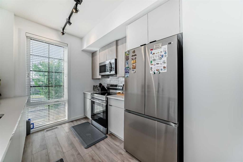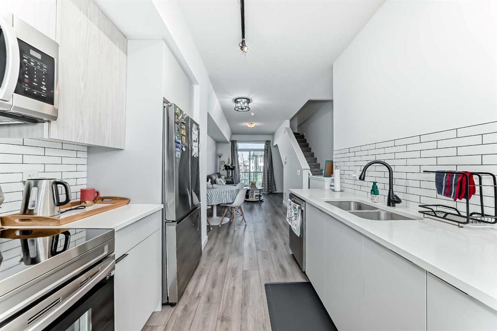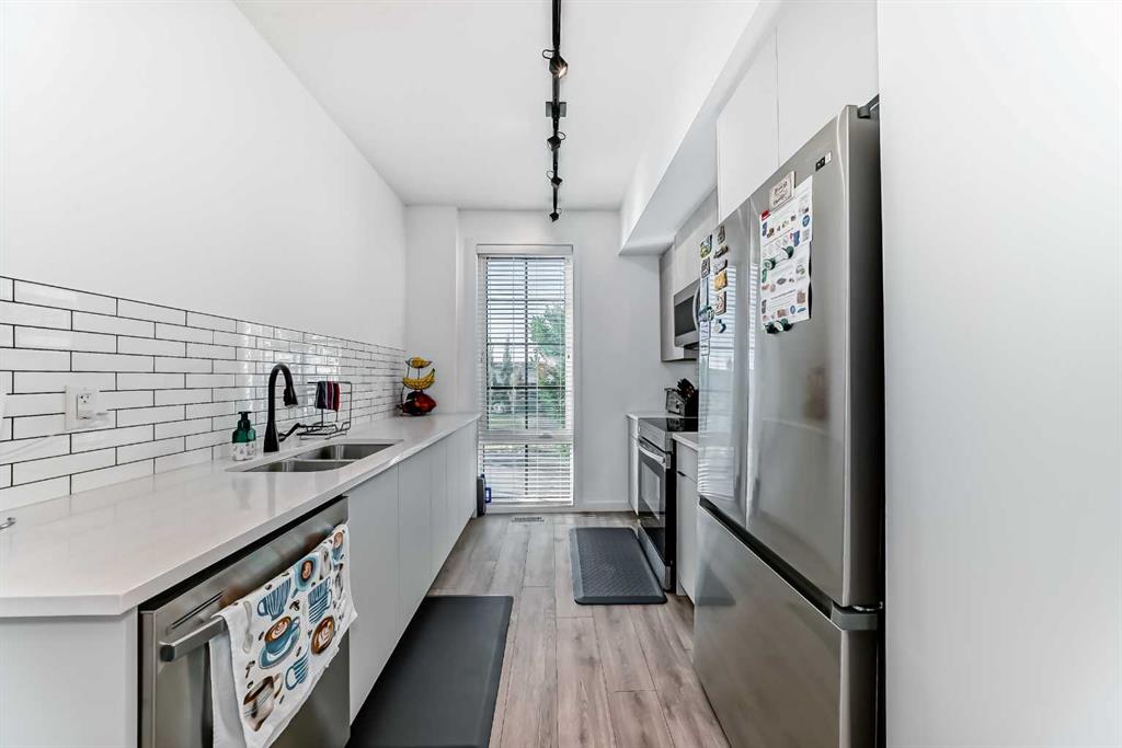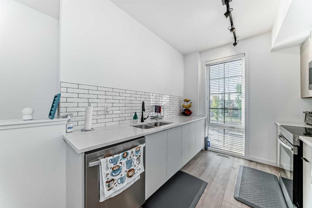 This immaculately maintained unit feels like new and is tucked away in a quiet location. From the moment you enter, you’ll be impressed by the thoughtful layout and modern finishes. The contemporary kitchen features stunning quartz countertops, stainless steel appliances, and flows seamlessly into a spacious living room that opens onto a covered balcony – perfect for relaxing or entertaining. The primary bedroom offers a generous layout with a 3-piece ensuite, while the second bedroom is conveniently located next to a 4-piece main bathroom. Pride of ownership is clearly visible throughout the home. Additional highlights include, Single attached garage, covered parking stall – for a total of 2 parking spaces. Close proximity to a soon-to-open K-9 school. Walking distance to daycare, gym, and retail shops like Domino’s Pizza. This unit is Move-in ready! Whether you're a first-time buyer, downsizer, or investor, this home is an excellent opportunity. SELLER IS MOTIVATED. Don't miss out!