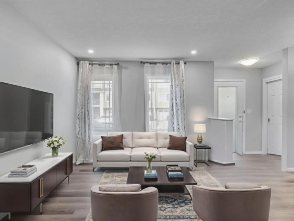 This immaculately maintained unit feels like new and is tucked away in a quiet location. From the moment you enter, you’ll be impressed by the thoughtful layout and modern finishes. The contemporary kitchen features stunning quartz countertops, stainless steel appliances, and flows seamlessly into a spacious living room that opens onto a covered balcony – perfect for relaxing or entertaining. The primary bedroom offers a generous layout with a 3-piece ensuite, while the second bedroom is conveniently located next to a 4-piece main bathroom. Pride of ownership is clearly visible throughout the home. Additional highlights include, Single attached garage, covered parking stall – for a total of 2 parking spaces. Close proximity to a soon-to-open K-9 school. Walking distance to daycare, gym, and retail shops like Domino’s Pizza. This unit is Move-in ready! Whether you're a first-time buyer, downsizer, or investor, this home is an excellent opportunity. SELLER IS MOTIVATED. Don't miss out!