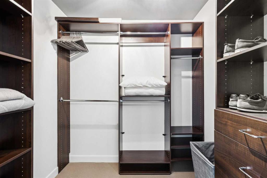 The chef’s kitchen is bold and functional, with Café appliances, bronze hardware, quartz waterfall counters, and a walk-in pantry upgraded with custom California Closets shelving.Perched at the edge of the building, the primary suite is a sanctuary of privacy and calm. Encased in concrete with no neighbours on either side, it offers unrivalled quiet. Imagine sinking into bed, the fireplace glowing beside you, as the lights of the Calgary Tower twinkle in the distance—a nightly view reserved only for the few at the top. The ensuite is clad in rich limestone with a private water closet, and the custom walk-in closet—designed by California Closets—provides the organization and polish you’d expect at this level. More than four walls—it comes with a lifestyle amenities including Sunterra Market and Market Bar at your doorstep, a professional fitness center and cardio room, guest suites for visitors, and direct access to the +15 network, river pathways, and the city’s expanding core. One Titled "Rock-Star" parking stall and storage locker came come with this purchase and additional parking is available for rent.