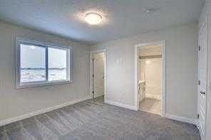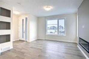 END UNIT, SIDE ENTRY TO BASEMENT. , IMMEDIATE POSSESSION, DOUBLE DETACHED GARAGE, DECK, FENCED AND LANDSCAPED, NO CONDO FEES. PICTURES ARE OF SAME MODEL, NOT SUBJECT PROPERTY. Welcome to the "St. Andrews" townhome, by Award winning, Master Builder, Douglas Homes Ltd. From the front covered porch, the entry opens onto the spacious great room with 9ft ceiling and gleaming hardwood floors throughout the main floor. The aspiring chef will appreciate the well planned "island" kitchen. From the upgraded 42 inch, soft close cabinets, to the gorgeous quartz countertops, everything is within easy reach. The sparkling stainless steel fridge, the glass top, self cleaning electric range, dishwasher, and over the range microwave/hoodfan are all just an arms length from the kitchen sink. Opposite side of the island, provides a convenient pantry, and desk with upper cabinet for all those recipe books you will collect. The spacious dining area features a large picture window looking out upon the back yard with room for the kids to play, with a rear entry door to the deck for those summer bbq's. Here also is a 2pc powder room for your guests convenience, and perhaps the kids hurried need. Upstairs includes 2 good sized secondary bedrooms, a 4pce bathroom with quartz vanity and tile floors, a convenient upstairs laundry, and a spacious primary bedroom with large upsized window and ensuite bath, with walk in shower, with glass front, tile floor and again a quartz vanity. The full basement provides rough in plumbing for a future bath, one window for future bedroom, and enough space remaining for a spacious future family room if you decide your family needs room to spread. All this in the desirable new subdivision Cobblestone Creek, with tennis courts, playgrounds, future school reserve, pathways and numerous green spaces, on the western edge of Airdrie, with wide open country side, and views to the west.