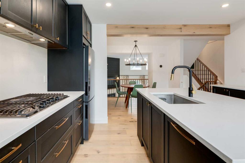 Beautifully renovated three bedroom home in coveted Pt. McKay. Enjoy the Bow River Pathway, quick access to downtown, major transportation system, hospitals, quick getaway to the mountains and yet you are tucked away in a peaceful oasis and nestled in a fabulous complex that allows you to enjoy nature amid the hustle and bustle of life. Enter the spacious foyer with access to single attached heated garage, then go up to the bright and lovely living room with soaring ceilings & gas fireplace with stylish feature wall. Enjoy your BBQ's on the big private deck, surrounded by beautiful trees. Kitchen/walk-in pantry and dining overlooking the lower area are bright with tons of natural light. Quartz countertops, double wall ovens, gas cooktop, dishwasher, fridge and stainless sink. Lots of planned storage. Wood and metal railings. Fabulous engineered flooring mostly throughout. Primary bedroom has ample closets with 3-piece designer shower. The 4-piece custom tiled bathroom shared by two other rooms bedrooms enhances the living space. Pt. Mckay speaks for itself! An amazing place to live!!