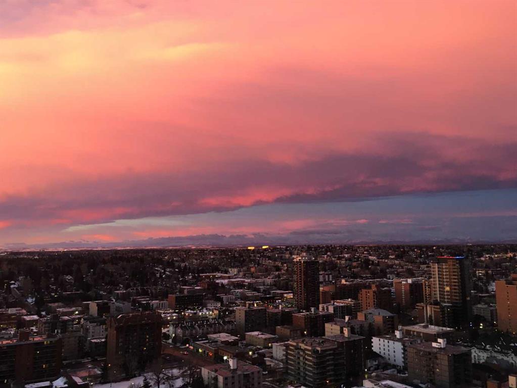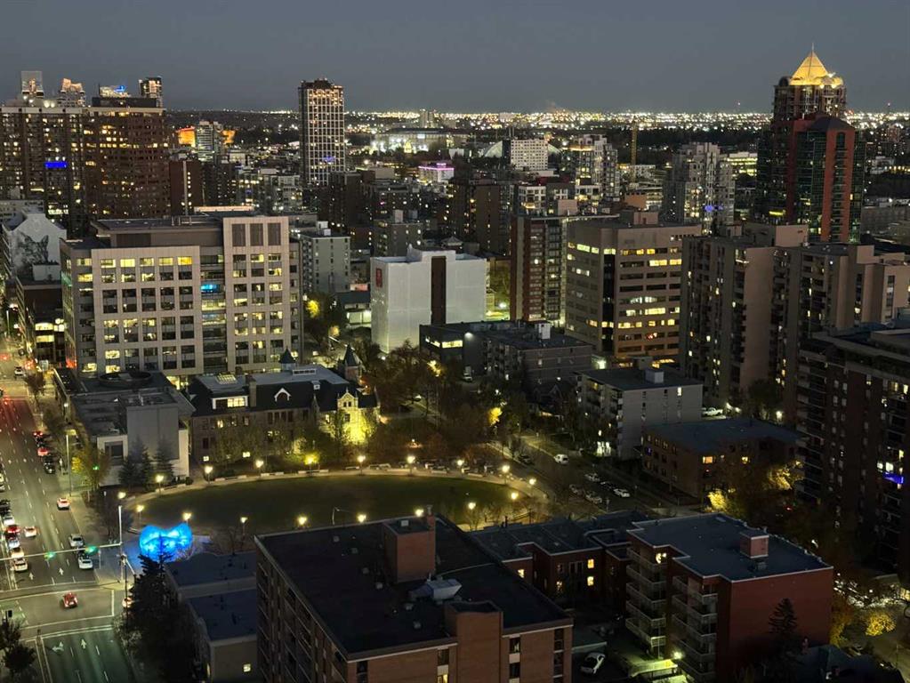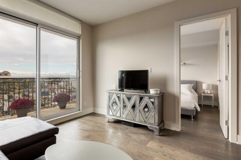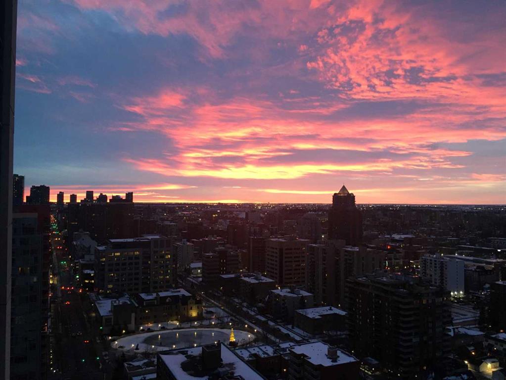 Take in the VIEWS from this 26th floor suite in LUNA in the heart of Calgary's Beltline. Original owner is selling this contemporary and bright suite with south facing balcony. An efficient use of space, this one bedroom offers quality finishes in an amenity rich building. Interior features include wide plank hardwood flooring, updated LED lighting, soft close cabinetry, quartz countertops, full height glass tiling in kitchen, Fisher Paykal stainless refridgerator, gas stove top and convection oven, heated tile floors in bathroom, air conditioning, nine foot ceilings in living area and bedroom. Luna residents benefit from full-time concierge services, well equipped fitness room plus yoga studio, two steam rooms, resident lounge with pool table & fireplace, beautifully landscaped private courtyard, two guest suites (nightly fee), bicycle storage, and visitor parking. The property includes a titled underground parking stall and storage locker on the main floor. Embrace a 15 minute lifestyle for leisure and work. Bike lanes are at your doorstep and Safeway, COOP, Save On Foods, and 17th Avenue are all within less than a 10 minute walk. Start and finish every day with scenic sunrises and sunsets with east, south, and west views from the 26th floor at LUNA!