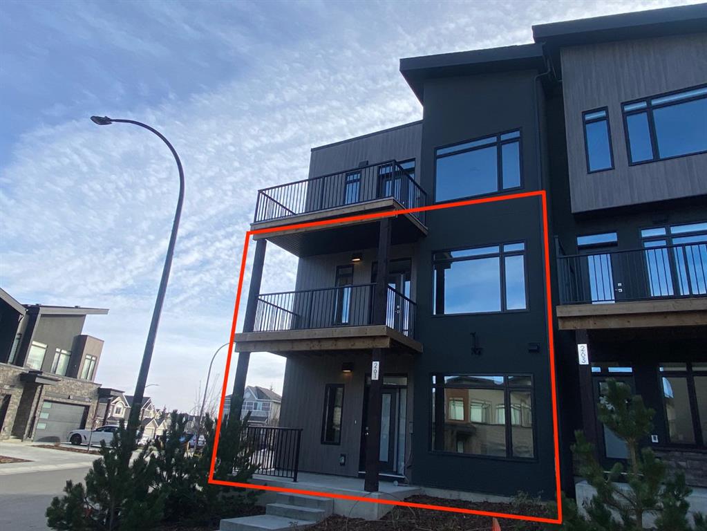 Ravines of Royal Oak by Janssen Homes offers unmatched quality & design, located on the most scenic & tranquil of sites in the mature NW community of Royal Oak. This 2BR, 1-full bath 1,233sf (1,233RMS) 24’-wide stacked townhouse with single attached garage boasts superior finishings. Open-concept-plan features a fresh, modern kitchen with full-height cabinets, soft close doors/drawers & full extension glides, quartz counters, undermount sink, plus 4 S/S appliances & convenient peninsula island opening onto both dining area with access to rear balcony & spacious living room. With over 900sf on the second living level there is ample space for a roomy master retreat, 4-pce bath with tile floor & quartz vanity, an additional bedroom which can be used as an office, & ultra-convenient laundry area. Convenient flex room on the main level along with a single attached garage with room to park an extra car on front driveway completes the package. Ravines of Royal Oak goes far beyond typical townhome offerings; special attention has been paid to utilizing high quality, maintenance free, materials to ensure long-term, worry-free living. Acrylic stucco with underlying 'Rainscreen' protection, stone, & Sagiwall vertical planks (ultra-premium European siding) ensure not only that the project will be one of the most beautiful in the city, but that it will stand the test of time with low maintenance costs. Other premium features include triple-pane, argon filled low-e, aluminum clad windows, premium grade cabinetry with quartz countertops throughout, 9' wall height on all levels, premium Torlys LV Plank flooring, 80-gal hot water tank, a fully insulated & drywalled attached garage that includes a hose bib & smart WiFi door opener, among other features. Condo fees include building insurance, exterior building maintenance & long-term reserve/replacement fund, road & driveway maint., landscaping maint., driveway & sidewalk snow removal, landscaping irrigation, street & pathway lighting, garbage/recycling/organics service. Bordered by ponds, natural ravine park, walking paths & only minutes to LRT station, K-9 schools, YMCA & 4 major shopping centres. Note - photos from a similar model in the complex.