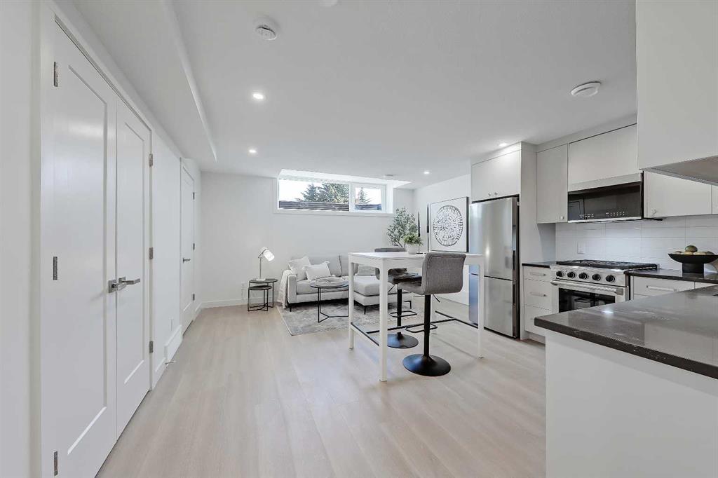 *BRAND NEW TOWNHOME PROJECT COMING TO GLENDALE! STILL TIME TO CUSTOMIZE!* Presenting a brand new 4-unit townhome project in the established Glendale community, offering a rare opportunity to enjoy luxury living without sacrificing space or comfort. Each unit boasts more than 1,600 sq. ft. of thoughtfully designed above-grade space, and a fully developed 1-bed LEGAL BASEMENT SUITE with its own separate entrance. This is a perfect opportunity for long-term rental income (a great mortgage helper!) or easy multigenerational living. Built by the renowned ZENITH GROUP and set for completion in 2026, this extra-wide townhome features high-end finishes, a striking exterior, and a prime SW location close to parks, schools, shopping, and transit. Step inside to soaring 9-ft ceilings, oversized windows, and luxury vinyl plank flooring that fills the main floor with light. A welcoming foyer with a closet leads to an open living room anchored by a sleek gas fireplace and a large picture window overlooking the street. The central kitchen blends style and practicality with quartz countertops, an oversized single-basin sink, stainless steel appliances, including a gas stove, a spacious island with bar seating, and high-end built-in cabinetry with a coffee bar. A dining area overlooks the private, fully fenced backyard, complemented by a rear mudroom and discreet powder room. Upstairs features a bright dual-primary layout with 9-ft ceilings, each bedroom offering a massive closet and ensuite with quartz counters, dual sinks, tiled floors, and a fully tiled stand-up shower with modern matte-black fixtures. A dedicated laundry closet adds convenience. The basement suite includes a private entrance, 8.6-ft ceilings, a sunken 140 sq. ft. patio, a spacious living area, a full kitchen, a 4-piece bath, in-suite laundry, and a large bedroom. The home also includes a single detached garage, a private, fully fenced concrete patio, and additional bike storage lockers. Set in Glendale, a family-friendly neighbourhood with tree-lined streets, excellent schools, parks, and quick access to downtown, this home combines suburban comfort with urban convenience. *Interior photos are sample images taken from past projects. Actual finishes may vary. Mood boards based on planned finishes, but may vary on completion. RMS measurements have been derived from the builder’s plans and may change upon completion.*