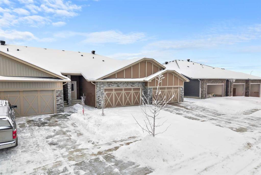 Welcome to The Stato by Luxe by Luxuria Homes, a beautifully designed bungalow-style townhome with no condo fees that blends luxury, functionality, and timeless appeal in the sought-after community of Wedderburn, Okotoks. Step inside and experience the feeling of space created by 10-foot ceilings and a bright, open-concept layout. Elegant wall wainscoting adds a touch of sophistication throughout the main living areas and primary bedroom, while upgraded lighting enhances every room with a warm, inviting ambiance. The gourmet kitchen features built-in appliances, quartz countertops, and a gas cooktop, opening onto a spacious dining area that’s perfect for gatherings. The great room centers around a beautiful tiled fireplace with a mantle, adding warmth and character for both everyday living and entertaining. The primary suite offers a true retreat with a walk-in closet featuring built-in shelving and a spa-inspired ensuite complete with a tiled shower and double vanities. A built-in bench in the mudroom adds practical style and convenience, while a versatile front den provides space for a home office or reading nook. The walkout basement is framed for future development, giving you the flexibility to finish it when the time is right. Enjoy outdoor living with a large rear deck with stairs, plus a covered concrete patio below for quiet relaxation. The double attached garage provides everyday ease, and the no-condo-fee lifestyle means more freedom and flexibility. Located in North Okotoks, Wedderburn offers scenic walking paths, green spaces, and quick access to local shops, dining, and essential amenities, all just 15 minutes from South Calgary. 27 Wolf Crescent is more than a home. It’s a refined, low-maintenance lifestyle designed for comfort and connection.