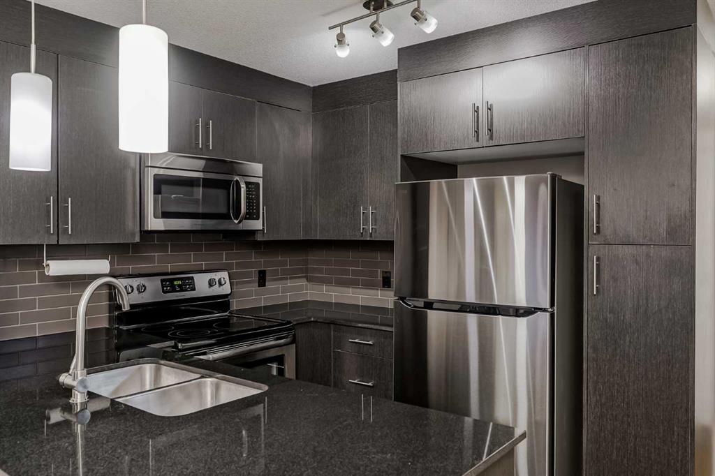 Welcome to Skymills in Skyview Ranch – Stylish, Modern & Maintenance-Free Living! Step into this showhome-quality, like-new condo that blends comfort with convenience. Perfectly designed, this open-concept second-floor home is filled with natural light thanks to its wall-to-wall windows and spacious layout. The gourmet kitchen is a chef’s dream, featuring a peninsula island with breakfast bar, stainless steel appliances, ample cabinetry, and a functional dining space. The bright living room opens onto your private balcony—the perfect place to relax or entertain, complete with a natural gas hookup for your BBQ. Your primary bedroom retreat offers a wall-to-wall closet and plenty of natural light. Additional highlights include in-suite laundry and a titled surface parking stall for your convenience. Ideally located, you’ll enjoy being minutes from CrossIron Mills, schools, shopping, public transit, and quick access to Deerfoot & Stoney Trail. Move-in ready and maintenance-free—this Skymills condo truly has it all!