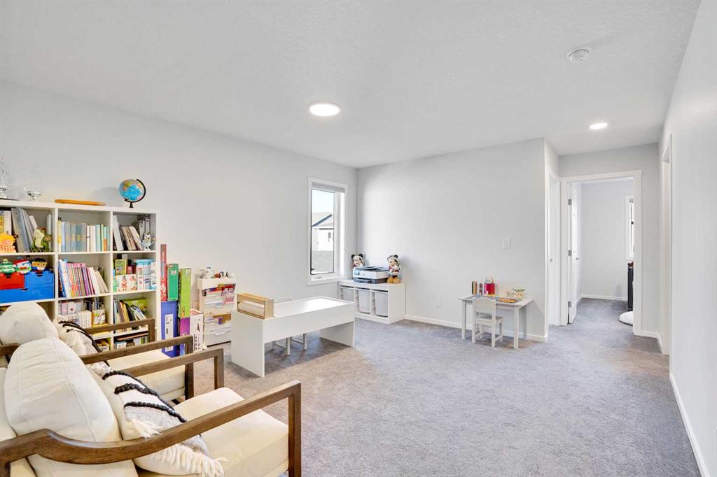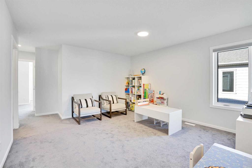 The inviting living room on the main floor and the large bonus room on the upper level offer plenty of space for family time and entertaining guests. The west-facing primary bedroom features triple-pane windows, a 4-piece ensuite bathroom, and a walk-in closet, filling the room with warm afternoon sunshine. Two additional east-facing bedrooms are generously sized, offering refreshing morning light to start your day right.
