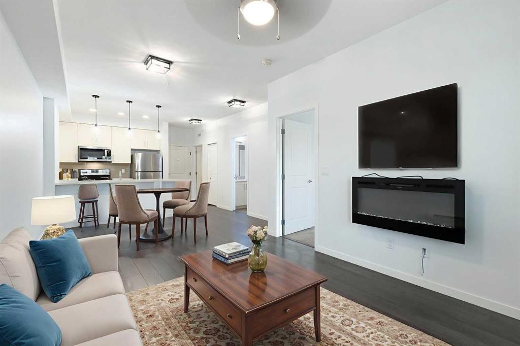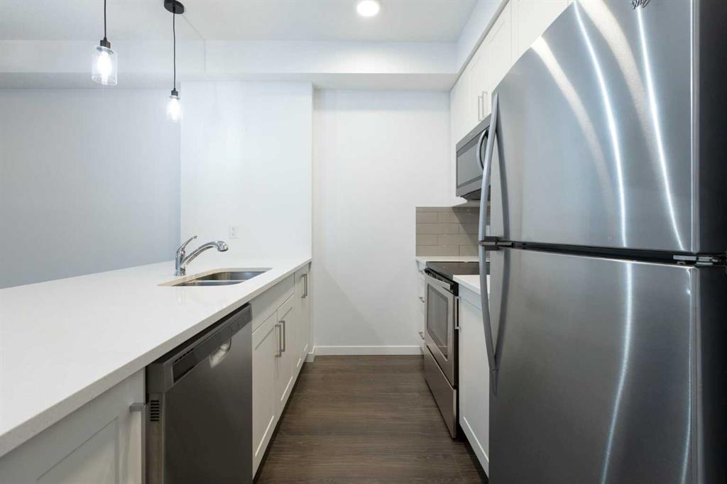 Experience modern comfort and lakeside living in this beautifully updated 1-bedroom, 1-bathroom condo, ideally located in one of Calgary’s most desirable lake communities, Mahogany! Built in 2017 and recently refreshed, this home is move-in ready and designed with both style and convenience in mind. The open concept layout features 9-foot ceilings and a bright, inviting atmosphere. The kitchen is equipped with sleek white cabinetry, quartz countertops, stainless steel appliances, a new microwave hood fan, and a breakfast bar for casual dining. Luxury vinyl plank and tile flooring flow throughout the main living spaces, while the bedroom offers soft carpet and a walk-through closet leading directly into the 4-piece bathroom. The living room is a cozy retreat with an electric fireplace, complemented by updated light fixtures and fresh paint throughout. Large windows fill the home with natural light, and the spacious private balcony, complete with a natural gas hookup, is perfect for outdoor dining and summer BBQs. A wall A/C unit provides added comfort year-round. Sandgate offers residents an impressive selection of amenities, including a 1,300 sq.ft. fitness centre, secure bike storage, a library, and a private storage locker. Guests can also take advantage of guests rental suites, and the community patio with BBQ facilities is ideal for larger gatherings. Your titled, heated underground parking stall ensures security and convenience. Living in Mahogany means enjoying exclusive access to the West Beach and the 22,000 sq.ft. Mahogany Beach Club, featuring sandy beaches, a splash park, tennis courts, a fishing pier, gymnasium, and fitness programs. The community also boasts 84 acres of lakefront, 74 acres of wetlands, and over 22 km of scenic pathways for year-round outdoor activities. Everyday essentials are just steps away at Mahogany Village Market, with Sobeys, Shoppers Drug Mart, Starbucks, and numerous dining and service options. For upscale evenings out, Westman Village offers fine dining at Chairman’s Steakhouse and live entertainment at Alvin’s Jazz Club. Families will appreciate the close proximity to schools, playgrounds, and parks, while commuters benefit from easy access to 52nd Street, Stoney Trail, and Deerfoot Trail. The South Health Campus, Seton YMCA, and major retailers are only minutes away. This condo is the perfect combination of modern updates, thoughtful amenities, and a vibrant lake lifestyle. Don’t miss your opportunity to make Mahogany home.