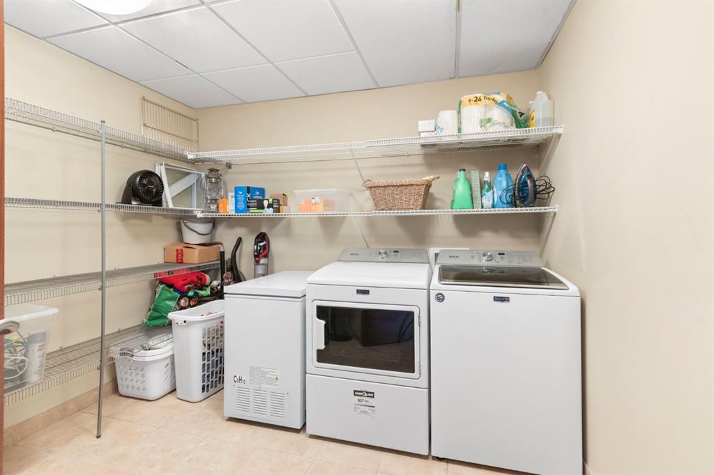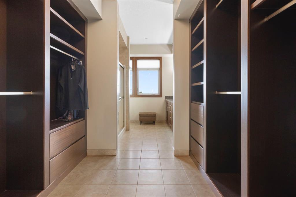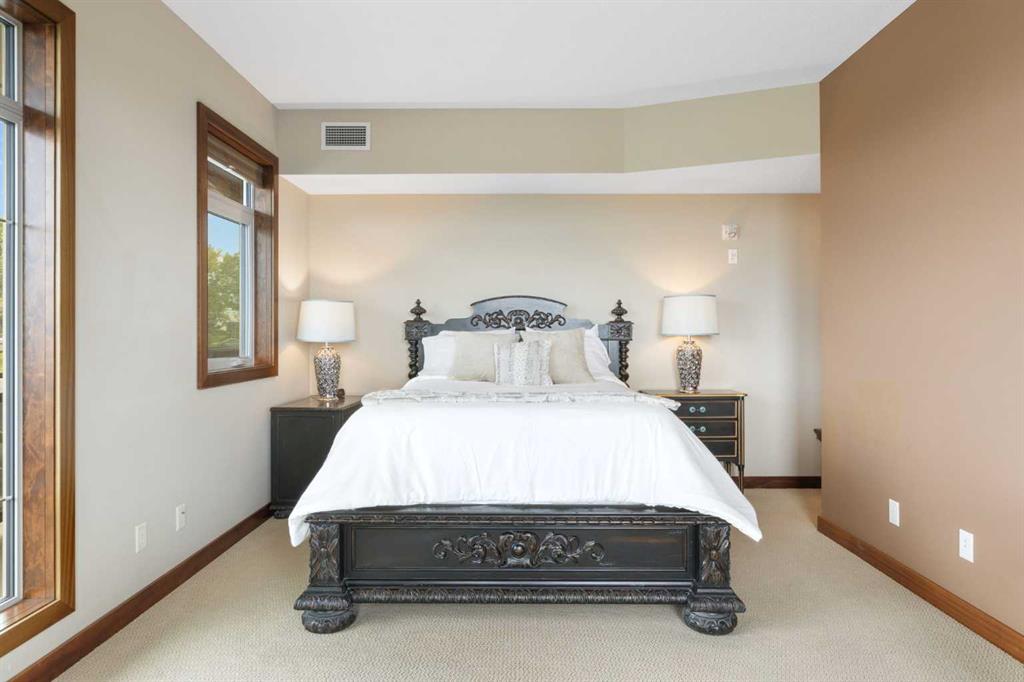 All three bedrooms are generously sized. The primary suite offers a luxurious four piece ensuite with dual vanities, an oversized walk in shower, and a spacious walk through closet with custom built ins. The second four piece bathroom features a deep soaker tub, ideal for unwinding at the end of the day.