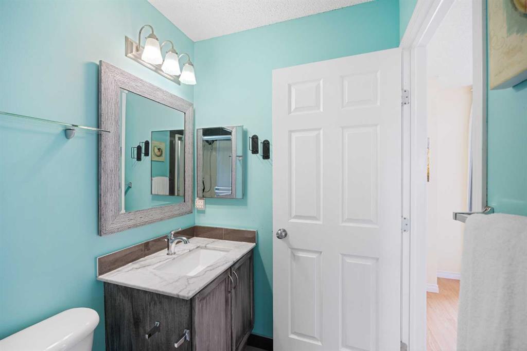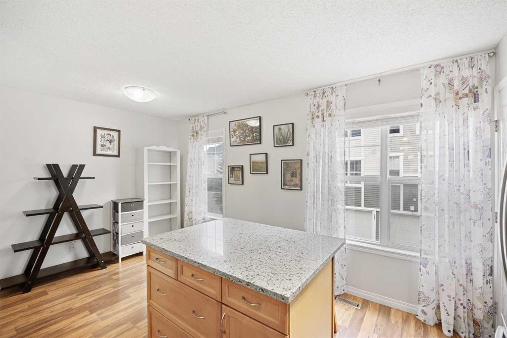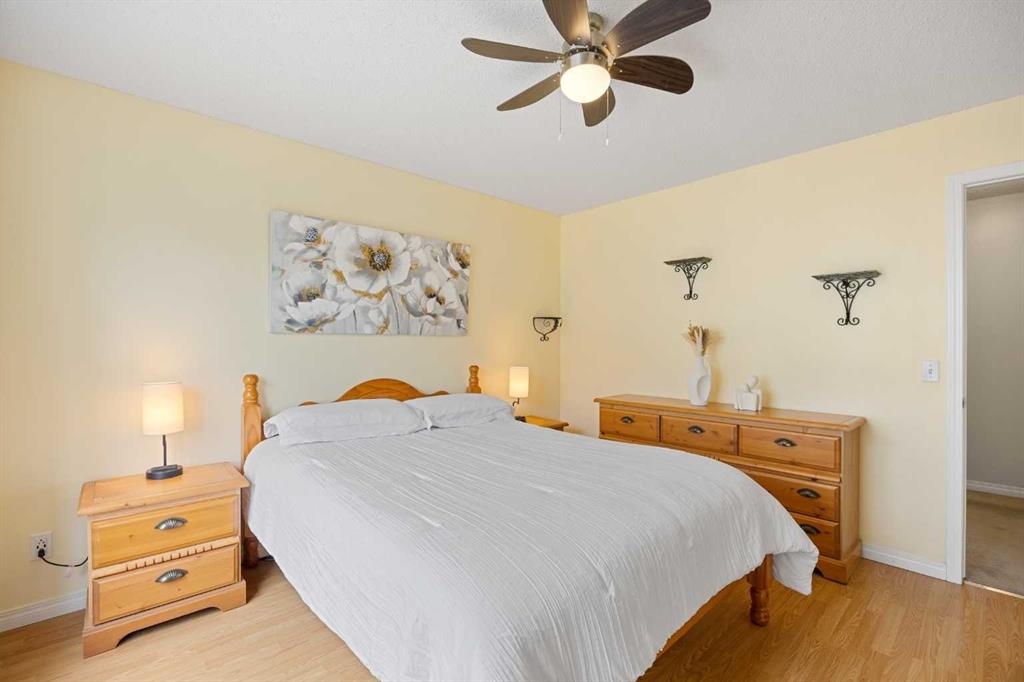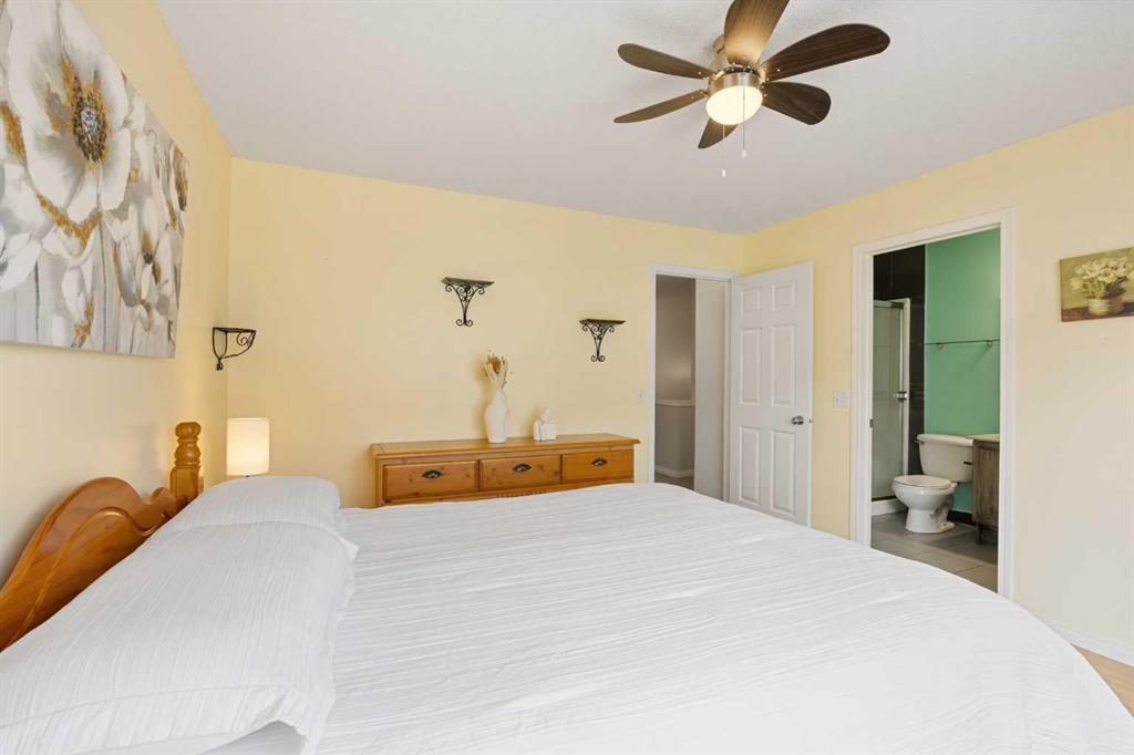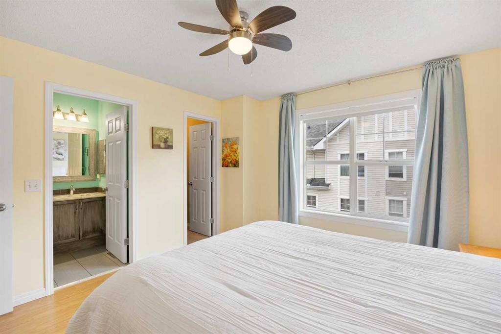 Health Campus Hospital and Calgary Transit bus routes to downtown, commuting is a breeze. Shopping and dining options are just around the corner, with McKenzie Towne and the Shopping Plaza on 130th Ave within easy reach. Upon entering, you'll be greeted by freshly painted walls and soaring 13 ft ceilings in the living room area. The spacious living room, filled with natural light from expansive windows, features dimmable LED lighting and an elegant chandelier, fostering a warm and inviting environment. The generous dining room is ideal for entertaining family and friends, while the bright eat-in kitchen boasts a movable island, stylish laminate flooring, stainless steel appliances, a granite countertop, and a RAW filter system. On the upper level, two master bedrooms await, each equipped with their own 3 & 4-piece ensuite bathrooms and walk-in closets, ensuring both privacy and comfort. Additional highlights include a two-car garage, sparing you the winter scraping hassle, and a condo board-approved air conditioning system. The lower level provides a convenient washer and dryer setup, along with ample space for a workout area, hobby room, or extra storage.