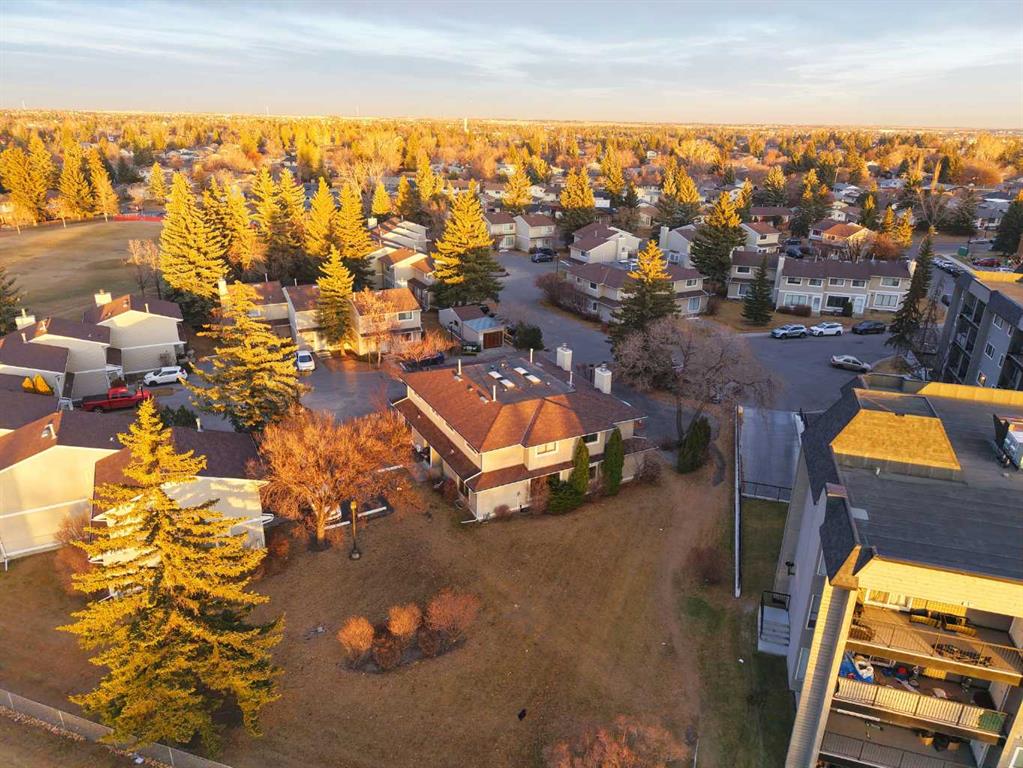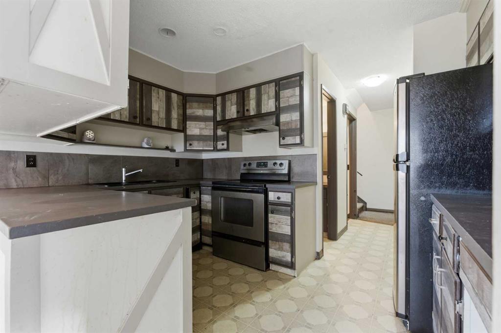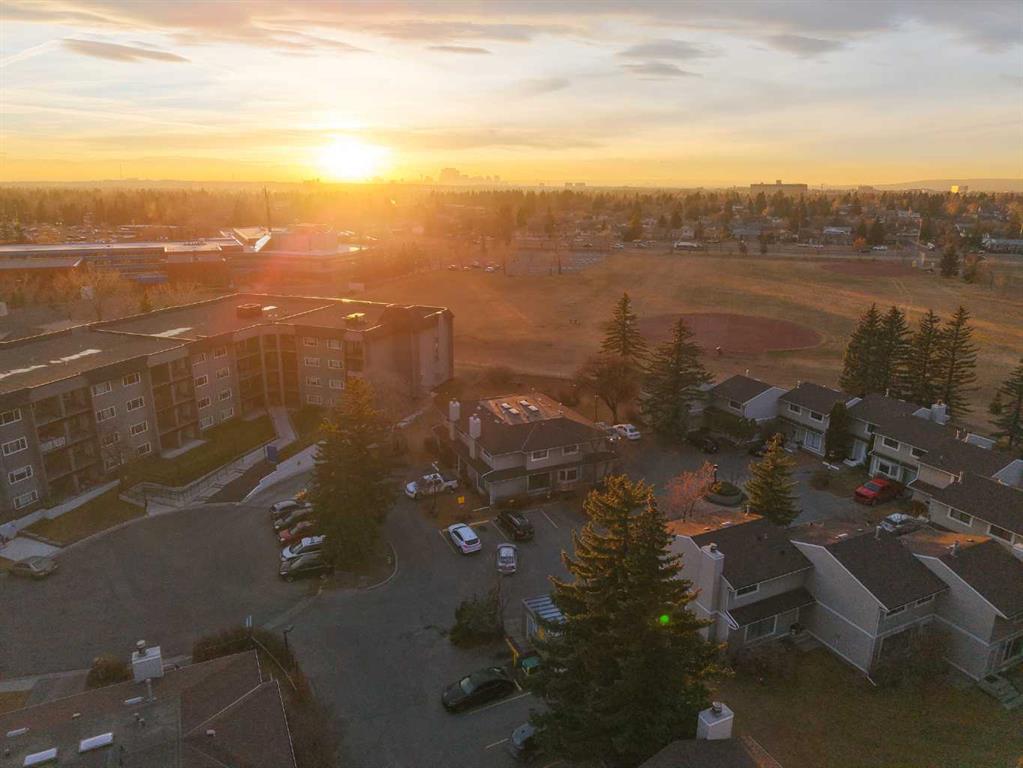 END UNIT | BACKING GREEN SPACE | 5 BEDROOMS | SPACIOUS 1280 SQ FT LAYOUT + FINISHED BASEMENT | VERY DESIRABLE COMPLEX | STEPS TO SCHOOLS, TRANSIT & AMENITIES | AMAZING VALUE FOR FAMILIES, INVESTORS & RENOVATORS | This bright end-unit townhome sits in a sought-after complex and offers an incredibly functional layout designed for families and anyone looking to personalize a home with their own updates. Oversized windows bring in natural light throughout the main level, while an inviting living room creates a warm gathering space anchored by an updated woodburning fireplace that adds both character and comfort. A bayed dining area supports easy flow for family meals and celebrations and the adjoining kitchen features generous cabinet storage, stainless steel appliances and a handy built-in desk for homework or work-from-home needs. A convenient powder room completes the main floor. Upstairs, 3 bedrooms ensure comfortable separation for family living, supported by a 4-piece bathroom with room to refresh and modernize. Even more flexibility awaits in the finished basement where a spacious rec room sets the stage for movie nights, gaming or a dedicated play area. 2 additional bedrooms and a 4-piece bathroom create valuable added living space for teens, guests or extended family. This level is ideal for buyers seeking versatility or investors exploring multi-generational accommodation options. Outdoor living is enhanced by direct access to a large green space, adding extra room for kids to play and for relaxed evening walks. A parking stall directly in front of the home adds everyday practicality. A truly unbeatable location elevates the value of this property, with Pineridge School, Saint Patrick School and Clarence Sansom School all within walking distance, along with transit, Village Square Leisure Centre, restaurants and shops. Quick access to Sunridge Mall and the C-Train strengthens convenience for commuting and errands. This is a fantastic opportunity for families, investors or handy homeowners to secure a spacious end-unit townhome in a well-managed community and update it to match their vision!