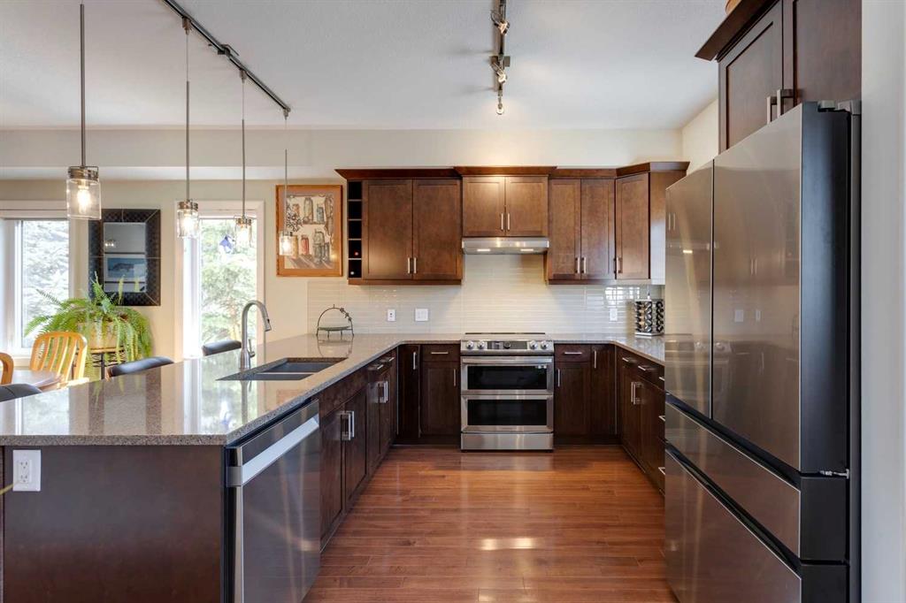 Ask us how you can get 2 months paid condo fees!!! Welcome to 303 Valley Ridge Manor NW—where nature, lifestyle, and luxury meet. Nestled in a quiet, upscale complex backing the Valley Ridge Golf Course, this beautifully maintained three-storey end-unit townhome offers over 1,800 sq ft of thoughtfully designed living space and unbeatable walkability to green space, pathways, and the Bow River. Whether you’re an avid golfer or a nature lover, this location gives you direct access to both—step out your door and onto the course or explore scenic trails that lead all the way to Bowness Park. Inside, you'll find two spacious bedrooms, each with its own ensuite and walk-in closet, plus a convenient upper-floor laundry room. The main living level showcases hardwood floors, extra windows for added natural light, high ceilings, and a welcoming open floorplan. The chef-inspired kitchen features granite countertops, an induction range, and a furniture-style pantry, with a flexible nook perfect for a home office or breakfast table. The cozy family room with a gas fireplace opens to a sunny balcony—ideal for al fresco dining or relaxing after a long day. With two outdoor spaces, you can choose to bask in the sun, or opt for a bit more shade. Here you have choice! A lower-level flex room adds even more functional space, perfect for a home gym or media room. Additional highlights include a double attached garage, upgraded lighting, Hunter Douglas blinds, a Nest thermostat, and low-maintenance landscaping. This turnkey townhome is the perfect blend of peaceful living and urban convenience—steps to the golf course and moments to the city. Notable upgrades include: Newer fridge, stove, dishwasher, hood fan, hot water tank, and ceiling fans! For more information, floor plans and phots, click the links below!
