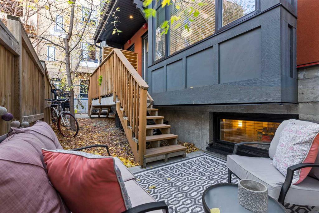 With OVER 1,443 SQ.FT of developed living space, this stylish 3 BEDROOM inner city townhome offers urban convenience just steps from 17th Avenue’s shops and restaurants. Quietly tucked in a boutique 9-unit complex, this courtyard unit is STUNNING and features a BRIGHT, functional layout. The top floor is dedicated to a SPACIOUS PRIMARY retreat with VAULTED CEILINGS, a large walk-in closet, spa-like ensuite with HEATED FLOORS, soaker tub, & a glass shower. You'll love the views of downtown Calgary along with the added added bonus of a private rooftop balcony overlooking the terrace below. The second level includes two generous bedrooms, a full bath, and laundry. The open-concept main floor features a modern kitchen with QUARTZ countertops, stainless steel appliances including a gas range, plenty of cabinet space, and a dedicated dining area that flows into the living room where you can cozy up to the gas fireplace. Enjoy your private courtyard patio with gas hookup — perfect for summer BBQs. A large flex room on the lower level offers additional storage or workout space. The home includes a secure, heated underground parking stall with direct access from your unit. Move-in ready and ideally located, this home combines modern design with the best of downtown living!