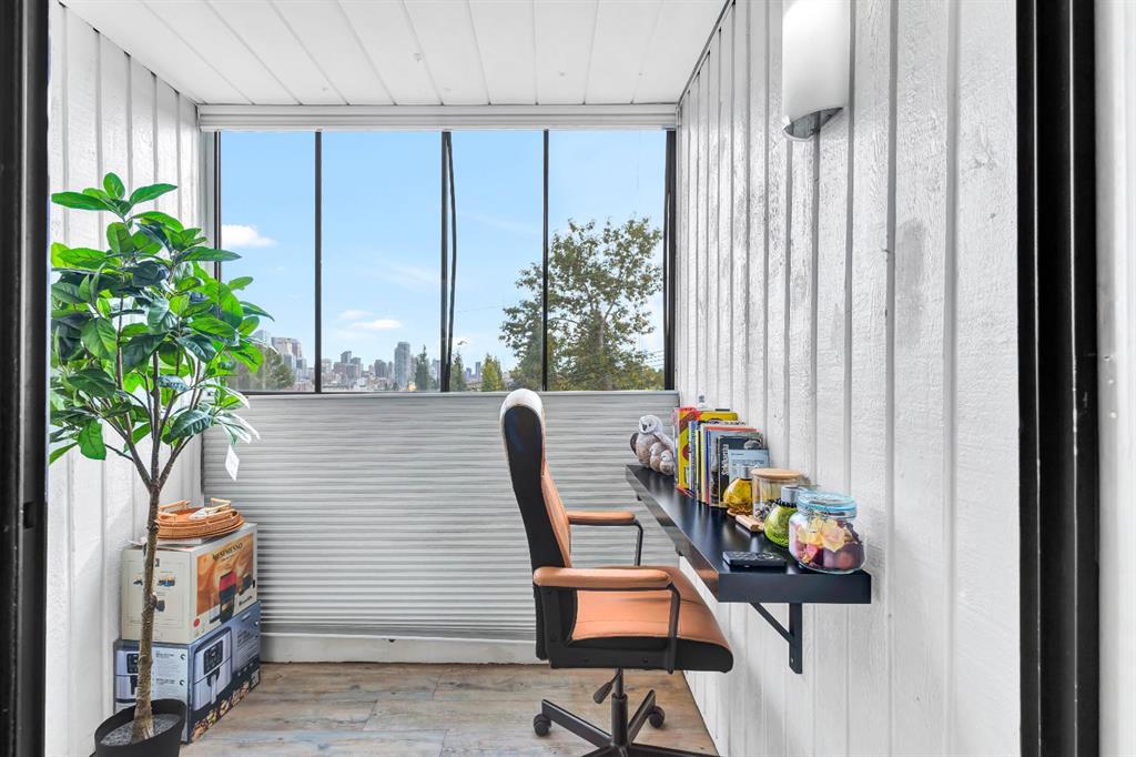 Welcome to this bright, renovated, move in ready condo in the Bankview community with downtown views and an excellent inner-city location just steps from 17th Avenue and minutes to downtown. Upon entering the unit, the updated kitchen is located to your left, while to the right you’ll find convenient IN-SUITE LAUNDRY and a storage area. Continuing into the home, the open-concept layout features a 4-piece bathroom on the right and an open dining area on the left. Straight ahead is the fully enclosed 70sqft balcony, which doubles as a flex room and works perfectly as a home office, offering beautiful views of downtown Calgary (not included in measurements). Adjacent to the dining area is an open living space that also accommodates the bedroom area, creating a functional and versatile layout. Vinyl plank flooring runs throughout, and large windows provide plenty of natural light. Located in a well-managed building with CONDO FEES UNDER $400, this home is set in one of Calgary’s most beautiful and established inner-city communities. Close to parks, schools, downtown, and just a 15-minute walk to the Sunalta CTrain. This perfect move-in ready property also comes with the option to include all existing furniture at no additional cost!