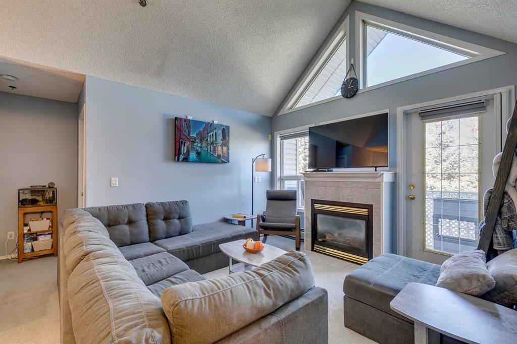 Welcome to Unit 305 at 7 Harvest Gold Manor NE—an exceptional top-floor home that stands out as one of the best in the building - only one direct neighbour! This bright and airy unit is defined by its soaring vaulted ceilings and a stunning wall of windows that fill the open-concept living space with natural light.