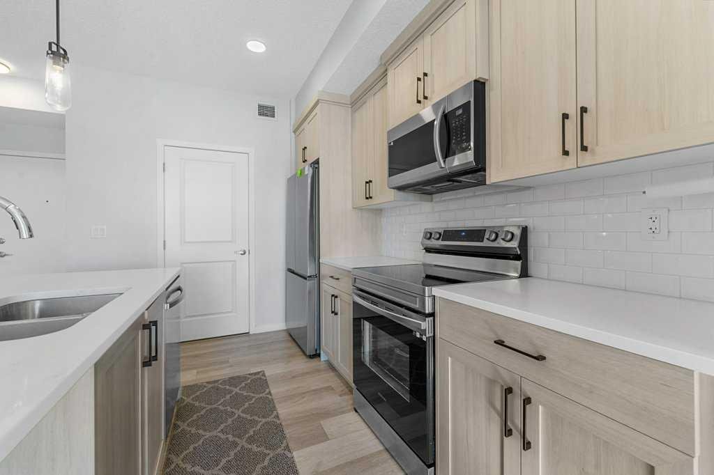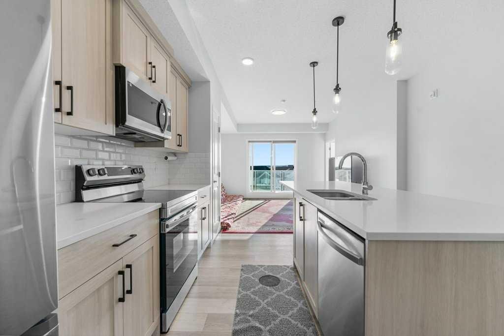 ***Watch 3D Tour*** Introducing a stunning and modern 2-bedroom 2 Bath Located in a prime area, this apartment is surrounded by all the amenities one could desire. This unit boasts plenty of natural light, making it a bright and welcoming space. The open-concept living room and kitchen with an island is perfect for entertaining guests. The kitchen is equipped with Modern Stainless steel appliances and ample storage space, making it the perfect space to cook and dine with loved ones .The Two bedrooms include a Primary Suite with a BEAUTIFUL ENSUITE BATHROOM. This UNIT is like New and has been well cared. There is lots of natural light into the unit and other features include throughout Vinyl flooring, zebra Blinds, Ensuite , a large IN-SUITE LAUNDRY/STORAGE Space and UNDERGROUND PARKING. The unit comes with three assigned storage lockers. The unit's prime location offers a comfortable and convenient lifestyle. Take advantage of the surrounding amenities, including sidewalks, streetlights, and walking/bike paths, perfect for exploring the neighborhood. Quick and Easy Access to Stoney Trail. Overall, this apartment is perfect for those seeking comfort, convenience, and modern living. With its spacious design, and prime location, it is truly a gem in the housing market. Don't miss the opportunity to make this apartment your new home!