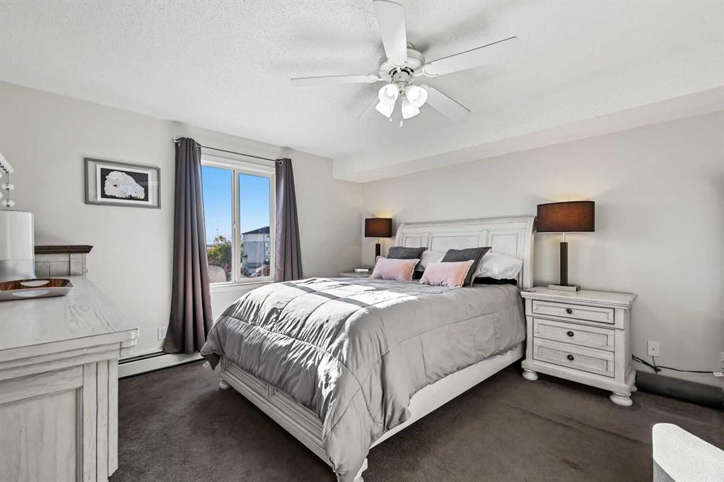 Welcome to this impeccably upgraded 2-bedroom, 2-bath condo in the sought-after Somerset Crossing – one of the largest floor plans available in the complex, offering over 1,000 square feet of beautifully designed living space. Nestled in the heart of Somerset, just steps from Shawnessy’s shopping, dining, and amenities, this stunning home combines comfort, function, and style in one of Calgary’s most walkable neighborhoods. Step inside to discover brand-new luxury vinyl plank flooring flowing seamlessly throughout the main living areas, giving the home a modern yet warm feel. The kitchen has been completely reimagined with a custom flush central island, perfect for prepping meals, entertaining guests, or enjoying your morning coffee. Extended cabinetry, finished with elegant glass insets and a matching countertop, stretches into the spacious dining area—providing tons of extra storage and display space, rarely found in condo living. The open-concept living room is generous in size, basking in sun-soaked Southeast exposure with unobstructed views of the peaceful courtyard and shimmering pond beyond. Step through the sliding glass doors onto your covered patio, where you can relax and enjoy the view—patio furniture included, so you’re ready to unwind from day one. Both bedrooms are privately tucked away, each enjoying bright southeast light. The primary suite features a large closet and a beautifully renovated 3-piece en suite with a stunning oversized walk-in shower, floor-to-ceiling tile, and sleek glass doors. A second 4-piece bath is perfect for guests or family. Practical touches abound, including a spacious entryway with room for a bench and a massive in-suite laundry/storage room—complete with the original island repurposed as a folding station or work surface, along with built-in shelving for smart, out-of-sight organization. You’ll also enjoy the convenience of one titled underground parking stall, and peace of mind knowing you're in a well-managed, sought-after building where residents tend to stay for the long haul. With quick access to Macleod Trail & Stoney Trail, Spruce Meadows just minutes away, and walkable access to everything from groceries to coffee shops and fitness studios, this location truly has it all. With quick access to the Somerset C-Train, heading to down town to enjoy all that Calgary has to offer is ideal - perfect to enjoy a nice blend of urban and suburban. Rarely do units like this come available—especially with these upgrades, size, and that unbeatable view. Don’t miss your chance to make this exceptional condo your next home!
