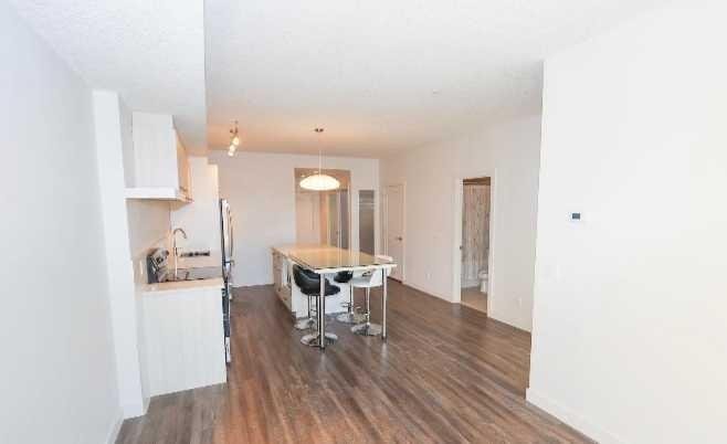Beautiful, bright, just like new condo in a prime Location with a south-facing balcony, perfect for enjoying sunny mornings. With an open concept, you'll be captivated by the modern interior. The kitchen is beautiful with lots of quality cabinets. Pristine white quartz countertops, with timeless elegance. The stainless steel appliance package ensures that your culinary adventures are met with modern conveniences. The primary bedroom is your own personal sanctuary, complete with a walk-in closet and the ensuite bathroom featuring an upgraded shower and sink. the Nice den / flex room is an added bonus. Natural light floods the interior through the large windows and French door leading to your personal balcony, creating a warm and inviting atmosphere throughout the day. Luxurious, durable flooring runs through the unit with large porcelain floor tiles in the bathroom. The nine-foot ceilings add a sense of spaciousness and airiness to the condo. The balcony is equipped with a gas line, making it ideal for outdoor cooking and entertaining. You’ll find a full laundry room conveniently located within the unit, providing practicality and ease to your daily routine. Enjoy the freedom to share your home with furry friends, as pets are allowed in this building, but must be approved by condo board. The building provides secure and heated underground parking, ensuring your vehicle is always protected and accessible. The unit also comes with a separate assigned storage locker. This condo is surrounded by playgrounds and parks. Explore the trendiest local restaurants and shops, just steps away from your doorstep. With in-floor heating throughout the condo. Don't miss out on the opportunity to call this luxurious condo your own. Experience the perfect blend of style, convenience, in an ideal location. Come and see for yourself schedule a viewing today!