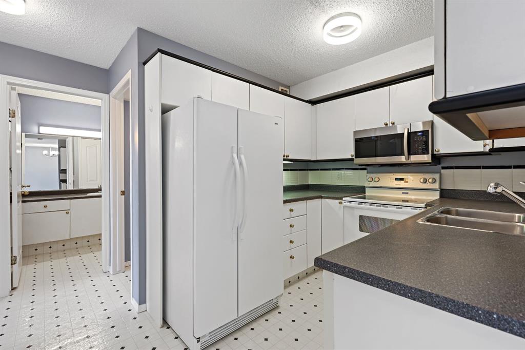 Both bedrooms are generous in size, and the layout provides privacy and flexibility. The unit includes a titled, heated underground parking stall, keeping your vehicle secure year-round.