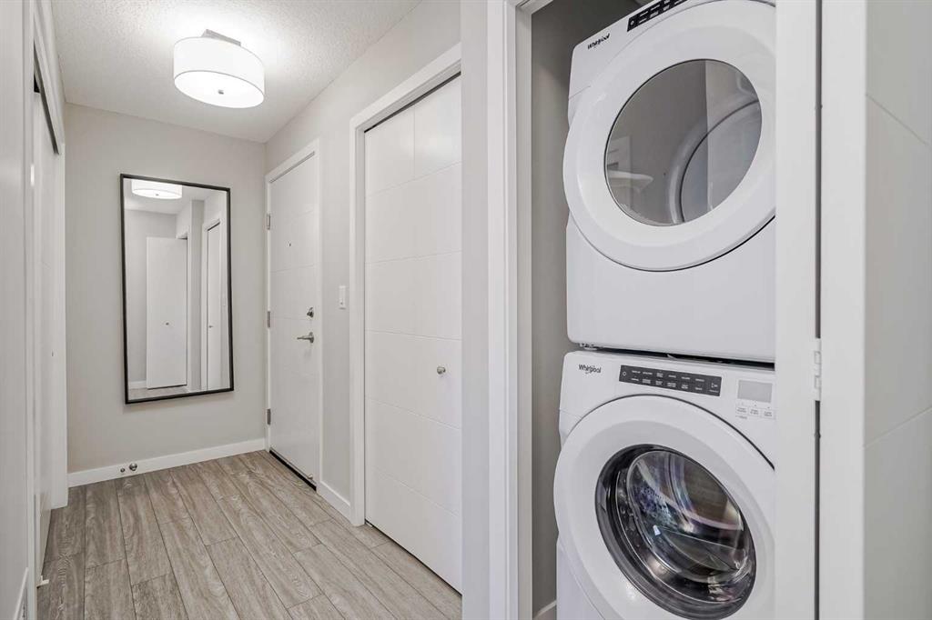 *EXPERIENCE ELEVATED LUXURY LIVING AT WESTMAN VILLAGE* Welcome to an exceptional opportunity in the prestigious, resort-style community of WESTMAN VILLAGE- a rare offering designed for those who value sophistication, comfort, and an unparalleled lifestyle on Calgary’s largest and most celebrated lake. FORMER SHOWSUITE at WESTMAN VILLAGE, this exquisite corner-unit 2-bedroom, 2-bath residence with two titled parking stalls redefines luxury condo living. Spanning 1,050 sq ft, this air-conditioned home is bathed in natural light thanks to its premium corner position and generous windows throughout. Elegant 9-foot ceilings, wide-plank luxury vinyl flooring, and an open-concept layout create an inviting sense of space and serenity. The beautifully designed modern kitchen features sleek WHITE cabinetry, quartz countertops, and a refined colour palette that flows seamlessly into the bright and spacious living area. This outdoor patio is a sanctuary and a standout feature - an ideal extension of your living space, perfect for morning coffee, al fresco dining, or sun-filled relaxation. The oversized primary suite is a true retreat, offering ample space for a sitting area or workspace, custom closets with built-in organizers, and a private 3-pc ensuite with stylish, modern finishes. The spacious second bedroom includes a walk-in closet and large window, perfect for guests, family, or versatile use with convenient access to the full, 4-pc bathroom. Additional conveniences include in-suite laundry and a large pantry/storage room, ensuring both comfort and practicality. Perfectly crafted by Jayman BUILT, this residence showcases design integrity, with triple-pane windows, and forced-air heating and cooling.