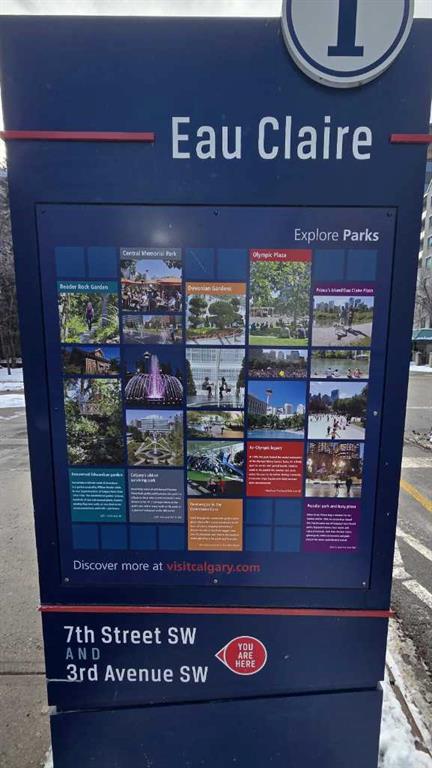 Welcome to this spacious and sun-drenched 1-bedroom end unit in Prince's Crossing, nestled in Calgary's highly desirable Eau Claire neighbourhood. Boasting over 800 square feet of uniquely designed living space, this south-facing gem features abundant natural light from plenty of windows, creating a bright and inviting atmosphere throughout. Enjoy the privacy of no one living above you, along with a private deck perfect for morning coffee or evening relaxation. Recently updated with newer luxury vinyl plank (LVP) flooring and fresh paint, this move-in-ready condo feels modern and pristine. As an end unit, it offers extra peace and quiet, while the oversized parking stall—conveniently located right next to the parkade entrance and elevators—makes coming and going effortless. Building amenities elevate your lifestyle with a well-equipped workout room, separate laundry facilities, concierge service, and 24-hour security in this well managed concrete high-rise. Step outside and immerse yourself in Eau Claire's vibrant yet serene vibe—just moments from extensive river walking paths, Prince's Island Park, trendy cafes, acclaimed restaurants, and the Bow River. Whether you're downsizing, investing, or seeking downtown convenience without the hustle, this rare offering combines space, updates, and an unbeatable location. Don't miss your chance to call this exceptional property home!