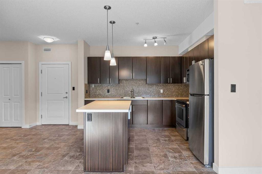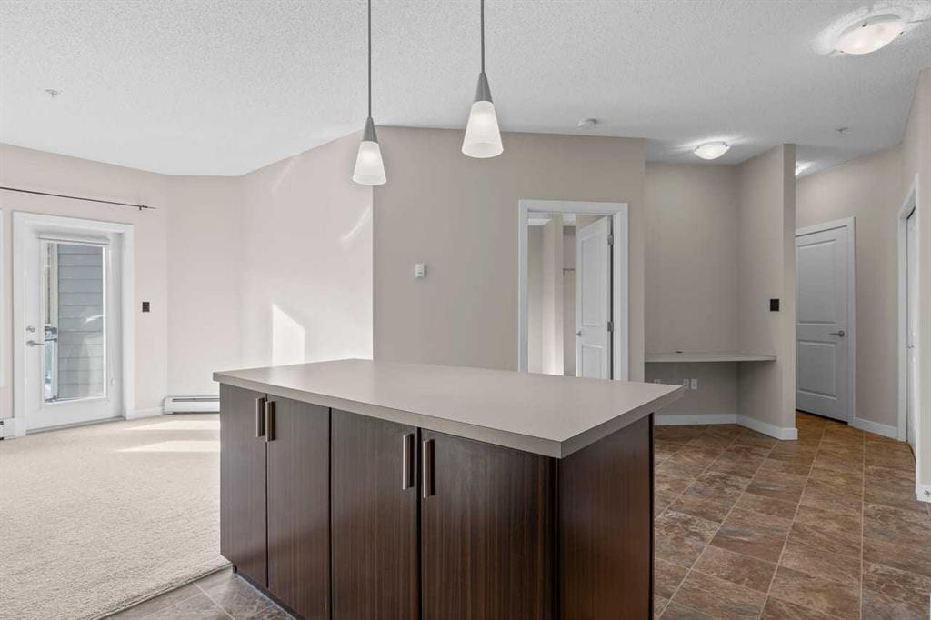 Discover this spacious 1-bedroom condo offering an impressive kitchen with stainless steel appliances, built-in microwave, and an abundance of cabinets and counter space. The massive 35.5” x 68” island is perfect for entertaining and casual dining.