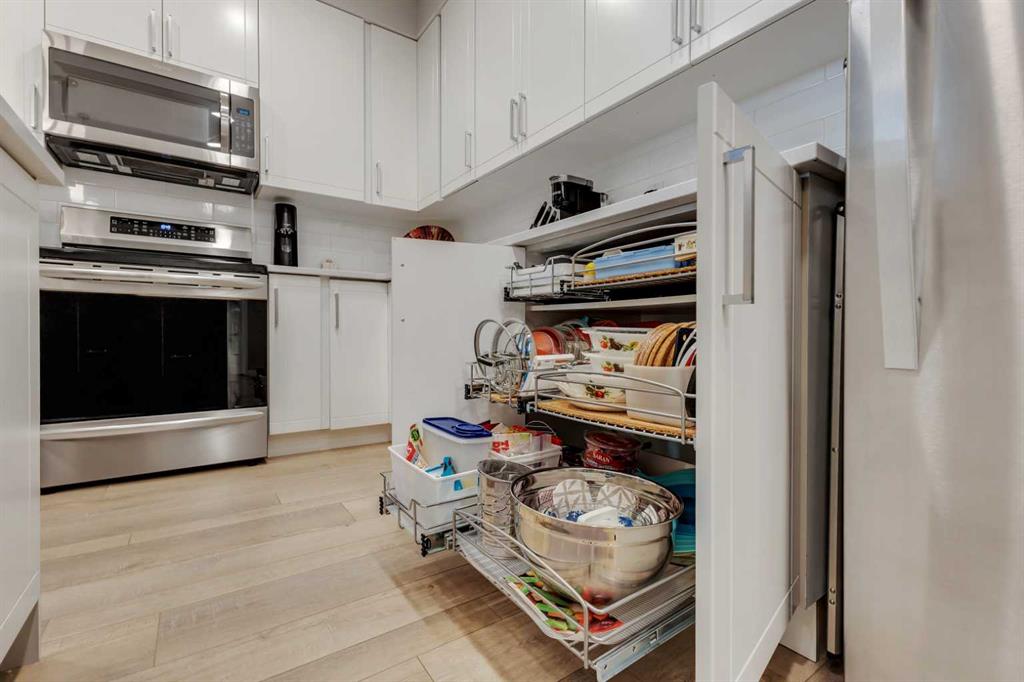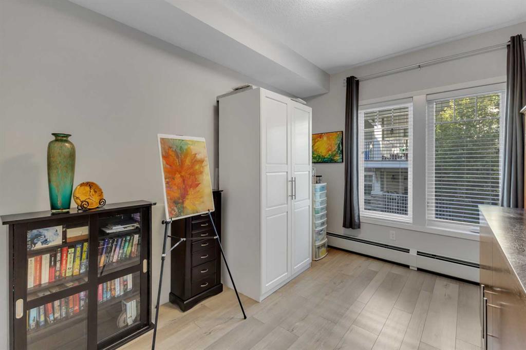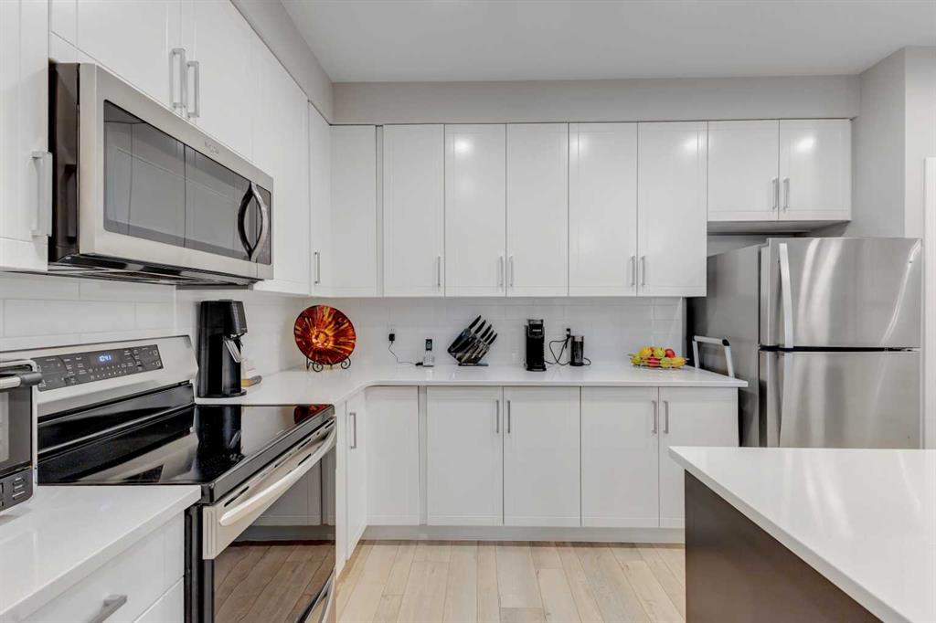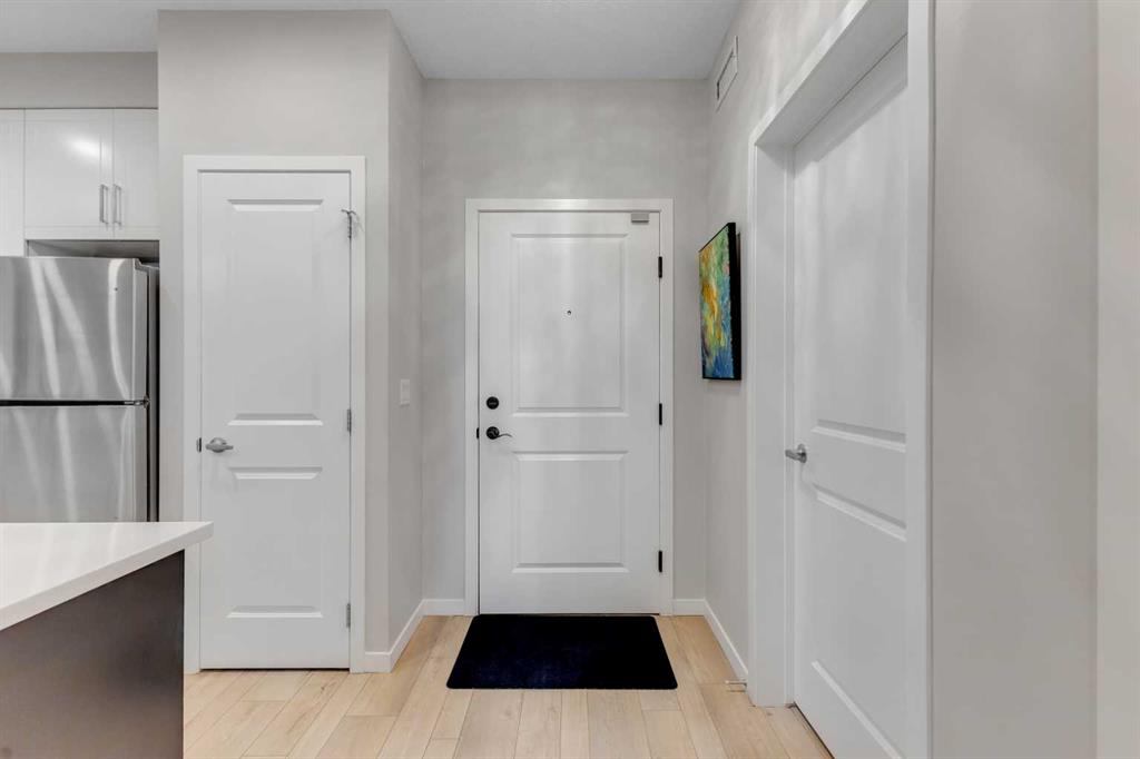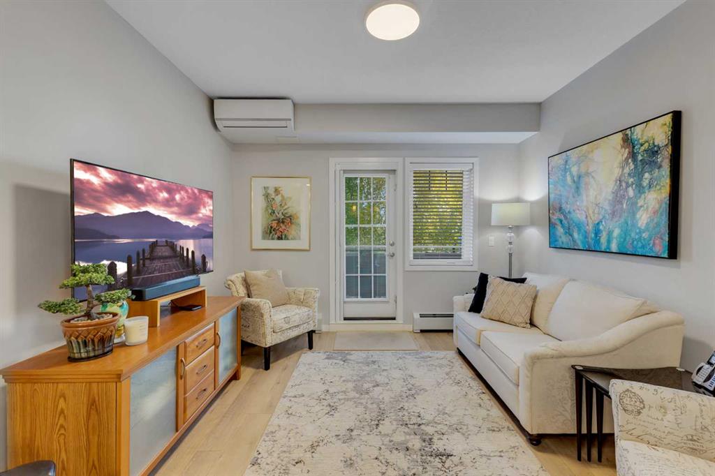 **Watch Virtual Tour** Across the street from Westman Village! Enjoy all the perks of living in this central location at an affordable price! One of the largest floorplans for a two-bedroom , two-bathroom condo. Private Patio on the quiet side with stunning trees. Inside, you'll find a spacious kitchen outfitted with sleek white raised cabinets, elegant quartz countertops, an oversized island with ample seating opportunities, stainless steel appliances including induction stove, and a garburator for added convenience. The kitchen opens into a thoughtfully laid-out living area that separates the two bedrooms—offering privacy and flexibility whether you're hosting guests, working from home, or sharing the space. The primary bedroom features a walk-through closet that leads into a private three-piece ensuite complete with a glass shower. The second bedroom is located adjacent to a full four-piece bathroom, perfect for guests or family. Luxury vinyl plank flooring runs throughout the main living spaces, and a dedicated laundry room with built-in pantry-style storage adds to the overall functionality. For year-round comfort, the unit includes air conditioning. Step outside to a large, north-facing covered balcony surrounded by mature trees, providing natural privacy and a peaceful place to relax. The balcony is equipped with a gas line for your BBQ, and the patio door features blinds encased in glass as well as a retractable screen—combining practicality with comfort. A titled underground parking stall is also included for added convenience. Located just a short walk from grocery stores, shops, cafes, and restaurants, this home offers unbeatable access to everyday essentials. And beyond your front door, Mahogany’s incredible amenities await—including 22 kilometers of scenic pathways, two private beaches, expansive parks, playgrounds, off-leash areas, and beautifully maintained green spaces. As a resident of Sandgate, you'll also enjoy access to a fitness studio, a lending library, guest suite, and pet-friendly policies—all in a building designed with character, quality, and livability in mind. This isn’t just a home—it’s a lifestyle. Don’t miss your opportunity to own in one of Calgary’s most desirable lake communities.