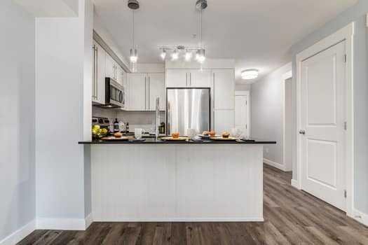 Open House Nov 9 - 2 to 4 pm. Living at the lake in Mahogany provides a lifestyle that everyone loves and can enjoy all year long. Grab your book and your lunch and escape to the lake for an hour or take the children after school for playtime before dinner and bedtime, or maybe a skate with friends and neighbors during the winter months. This great two-bedroom Condo checks all the boxes. Ideally located on the main floor, near the front entry and the elevator and not far from the parking stall. Featuring huge windows that brings in lots of natural light, freshly painted walls, new Luxury Vinyl plank flooring and upgraded lighting, including two ceiling fans plus granite counter tops with undermount sink, designer backsplash and stainless-steel appliances give you a classy modern place to call home. This bright open floor plan offers two good-sized bedrooms, the primary bedroom with huge windows overlooks the patio, the 2nd bedroom is great for guests or a home office and both bedrooms have full-sized closets. The 4-piece bathroom has tile floor, shelving above the toilet and a vanity with large vessel sink. The well-planned u-shaped kitchen overlooks the large living area, has lots of counter space, a flush eating bar and pantry. In-suite laundry with stacking washer and dryer. The good-sized patio with stone columns and gas line to BBQ, is accessed from the living room and is convenient to visitor parking making it easy for your visitors to stop by and is away from the main road. This great location is within walking distance of the lake, all the shopping and dining experiences you could want are very close by, plus South Health Campus for medical appointments, the car wash, your favorite ice cream parlor, parks and playgrounds and walking paths and so much more. Easy access to downtown and all major roads.