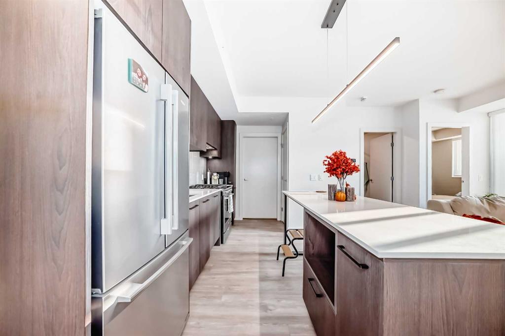 One of the best things about Kensington is The Theodore. Situated on the corner of Gladstone and 10th, across from Safeway and LRT, steps from a plethora of artisan shops and moments from the Bow River and pathways, down the hill from SAIT, a short drive to Foothills hospital and UofC and a short walk to work in the core, this building is perfect. This unit has much to offer including high ceilings, built in AC, a large balcony with afternoon sun, gas stove, in-suite laundry and titled parking. This unit is perfect for investors (already tenanted) single professionals or a couple looking to get into the market. Work from home or set up a yoga retreat in your den. The rooftop patio is equipped with 2 bbq, outstanding views (you can see both the mountains and downtown) and lots of seating. You will find a first come first serve bike storage on the first floor. Condo allows one pet per unit, dogs under 25lb. Set up a viewing today with your favourite Realtor or contact me directly for a showing.