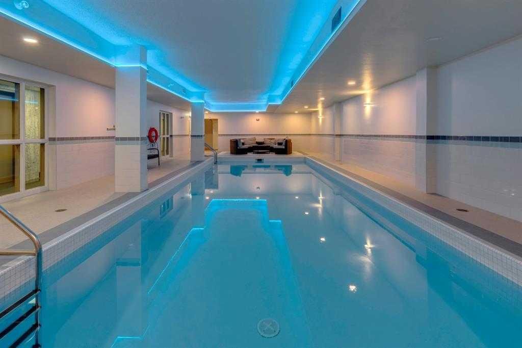 The building's meticulous management ensures residents enjoy a wealth of amenities, including assigned parking, an indoor saltwater pool, a dry sauna, and a fully-equipped fitness center.