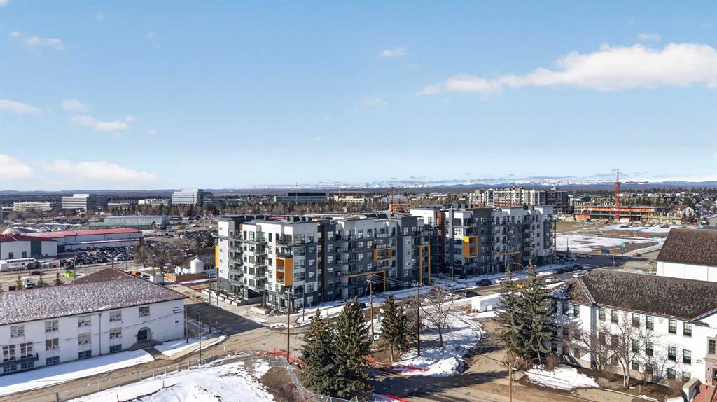 Welcome to this beautifully designed 1-bedroom + office/flex space condo offering nearly 689 sq. ft. of functional living in the highly sought-after community of Currie Barracks. Built by Rohit Communities, this unit stands out with its smart layout, modern finishes, and exceptional use of space—perfect for professionals, remote workers, or investors. The thoughtfully designed kitchen maximizes efficiency using the work triangle concept, while the oversized waterfall quartz island serves as the true centerpiece—ideal for cooking, dining, and entertaining. The open-concept layout flows seamlessly into the bright living area, enhanced by large windows that flood the space with natural light. A key highlight of this home is the dedicated office/flex space, offering the perfect work-from-home setup or additional storage—an increasingly rare and valuable feature in condo living. The spacious primary bedroom comfortably fits a queen-sized bed with room for nightstands, while the modern bathroom and in-suite stacked washer/dryer add everyday convenience. Step outside to your private deck, perfect for summer BBQs or relaxing evenings. This unit also includes one titled underground parking, providing security and comfort year-round, and a storage locker. Ideally located just 7–10 minutes to downtown, Mount Royal University, Marda Loop, CF Chinook Centre, and Glenmore Park, this home offers the perfect balance of urban access and community charm. With its generous size, functional layout, and added flex space, this is a standout opportunity in one of Calgary’s most desirable inner-city communities.