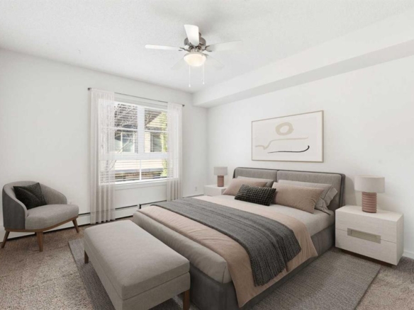 Welcome to a home that comes in perfectly designed packages. This 1-bedroom, 1-bathroom condo offers a smart layout that maximizes every inch, creating a bright and inviting space you’ll love coming home to. The open-concept kitchen and living area flow seamlessly, featuring granite countertops, stainless steel appliances, and cozy in-floor heating. The bedroom includes a cheater ensuite for added convenience, while a private, covered balcony provides the perfect spot to unwind outdoors. Enjoy the practicality of an assigned parking stall and storage unit, along with reasonable condo fees. Enjoy the convenience of being just steps from a shopping plaza with direct access to a Shell gas station, Tim Hortons, medical clinic, chiropractic clinic, and liquor store. A beautiful green park is located just across the street. With all the convenience, this home delivers both comfort and lifestyle. Whether you’re looking for your own low-maintenance retreat or a smart investment, this property is worth your consideration.