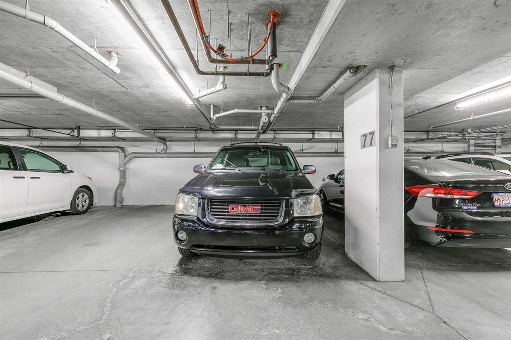 The spacious primary bedroom offers a walk-through closet leading to a private ensuite, while the second bedroom and full bathroom provide flexibility for guests or a dedicated workspace. Convenience continues with a titled underground parking stall, keeping your vehicle warm and secure year round, as well as access to bike storage.