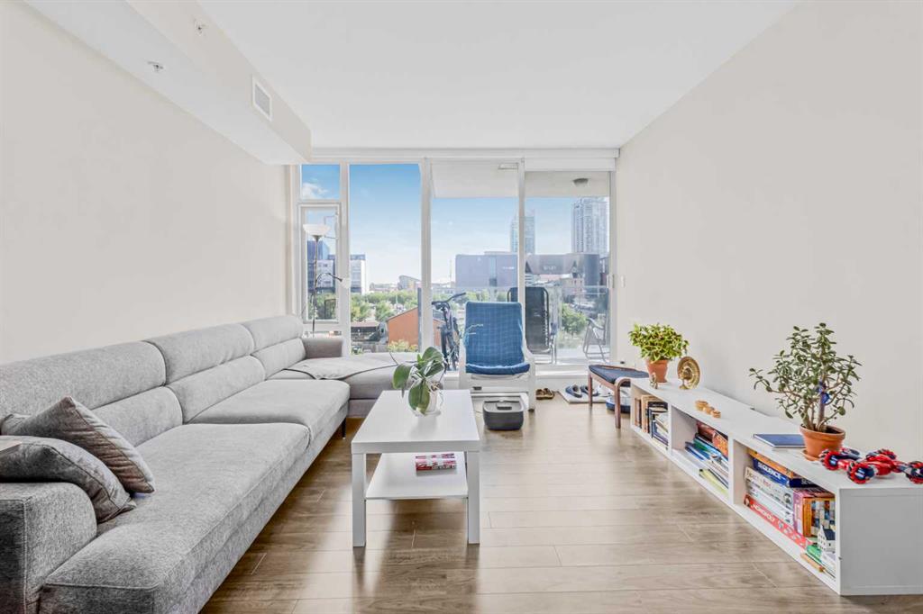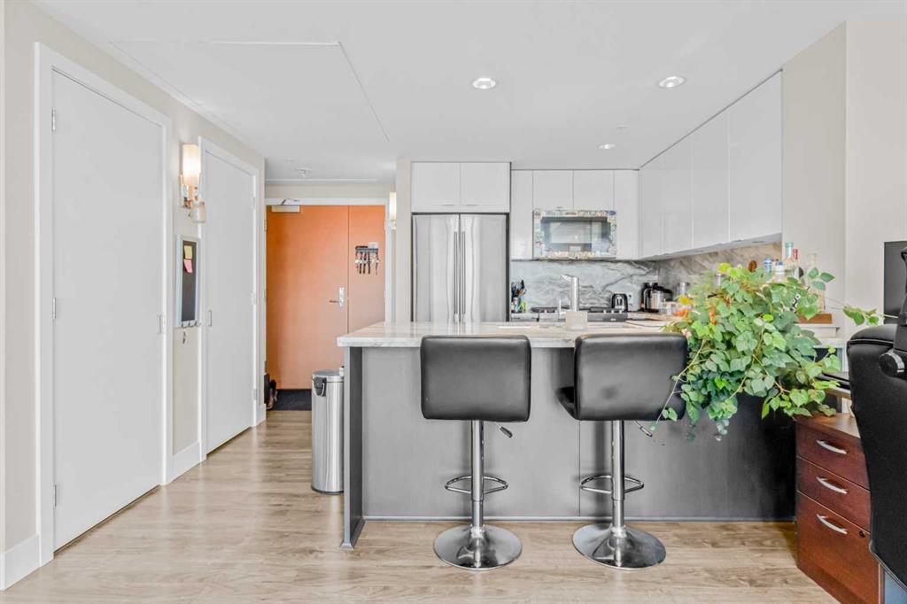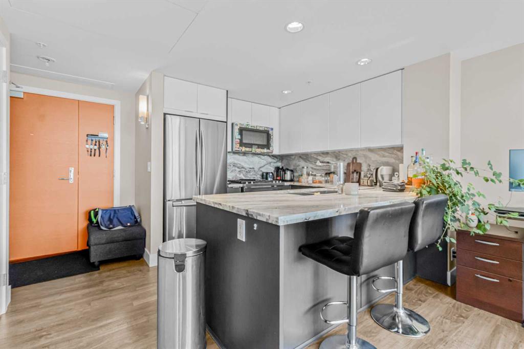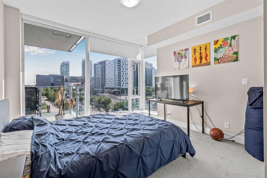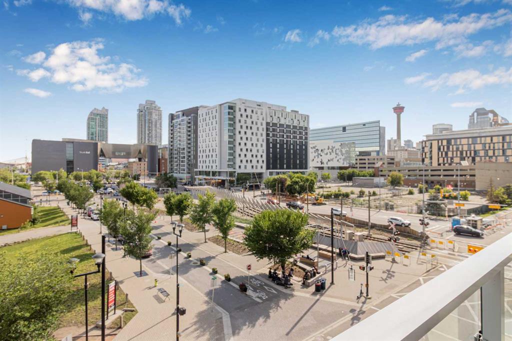 Experience luxury living in this 1 bed, 1 bath condo at the iconic Evolution in East Village. It features floor-to-ceiling windows with views of the Saddledome and Calgary Tower, chef’s kitchen with gas range, granite counters, central air conditioning and ensuite. Enjoy a spacious balcony with amazing Views. This unit comes with storage locker, and premium amenities including 24 hours security/concierge services, fitness centre, sauna, and BBQ area. Steps away from Studio Bell, grocery stores, RiverWalk, LRT, Library, and top restaurants. Don't miss on this "Stunning Living in East Village"— book your private tour today!