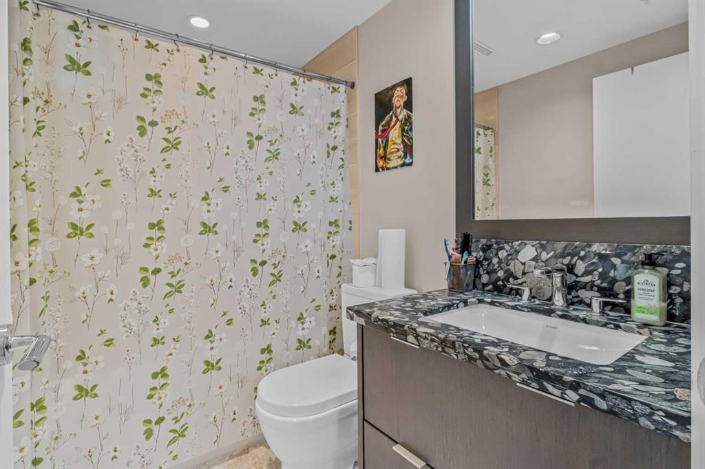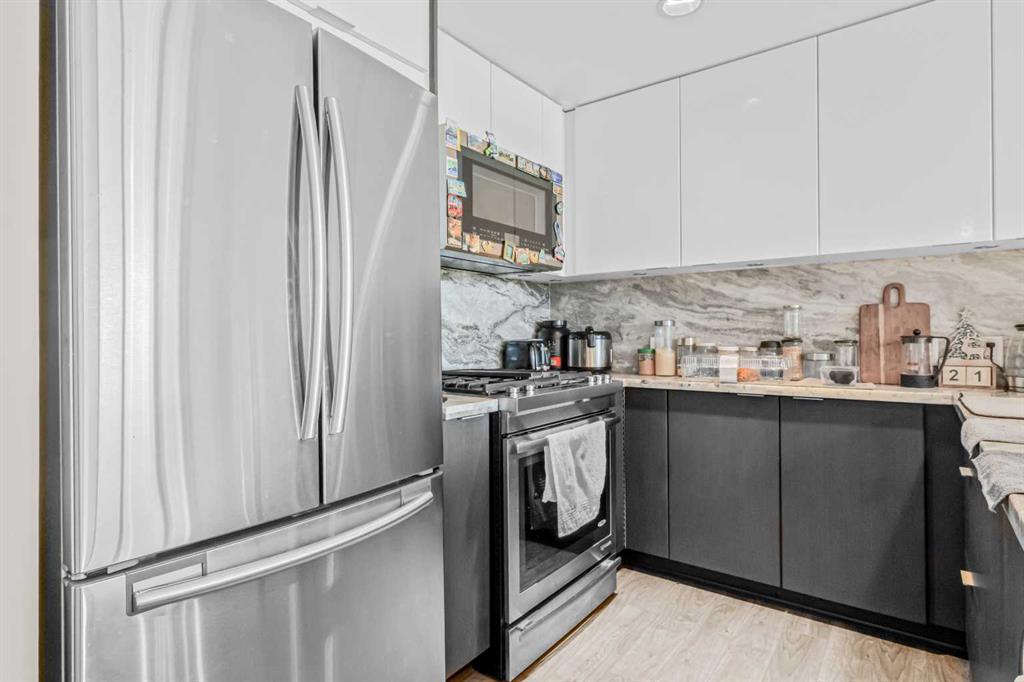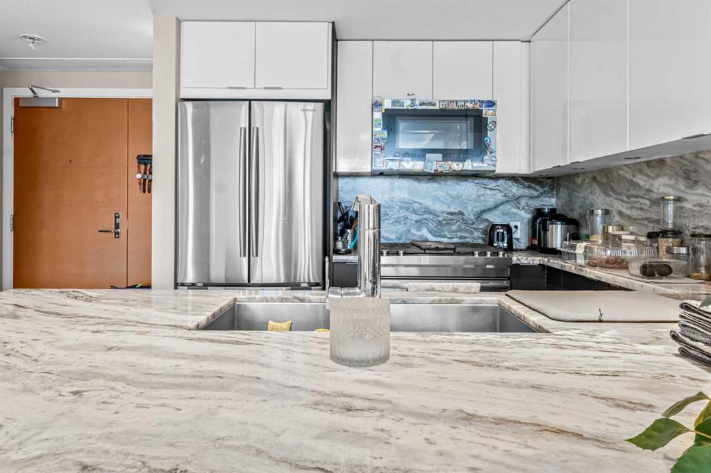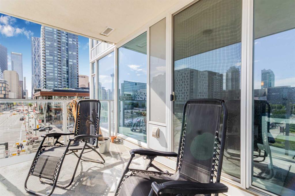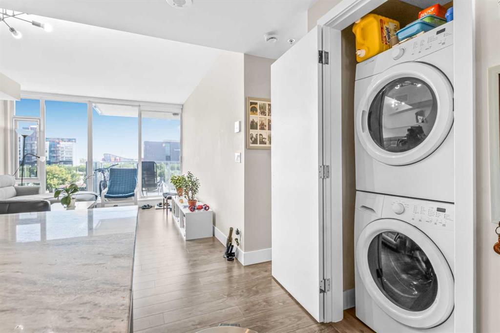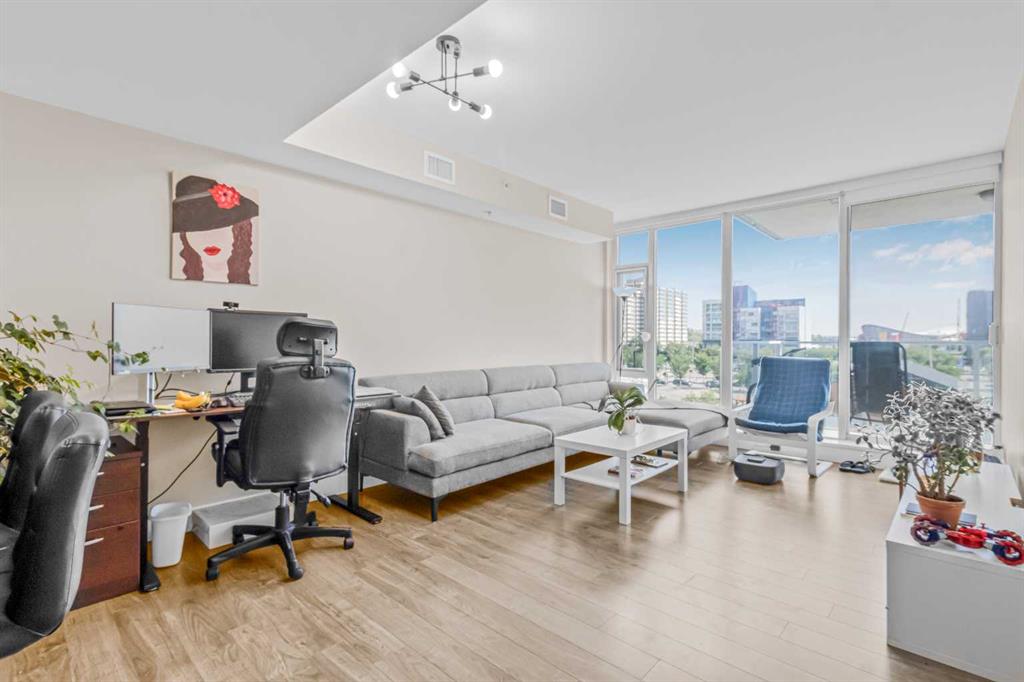 Experience luxury living in this 1 bed, 1 bath condo at the iconic Evolution in East Village. It features floor-to-ceiling windows with views of the Saddledome and Calgary Tower, chef’s kitchen with gas range, granite counters, central air conditioning and ensuite. Enjoy a spacious balcony with amazing Views. This unit comes with storage locker, and premium amenities including 24 hours security/concierge services, fitness centre, sauna, and BBQ area. Steps away from Studio Bell, grocery stores, RiverWalk, LRT, Library, and top restaurants. Don't miss on this "Stunning Living in East Village"— book your private tour today!