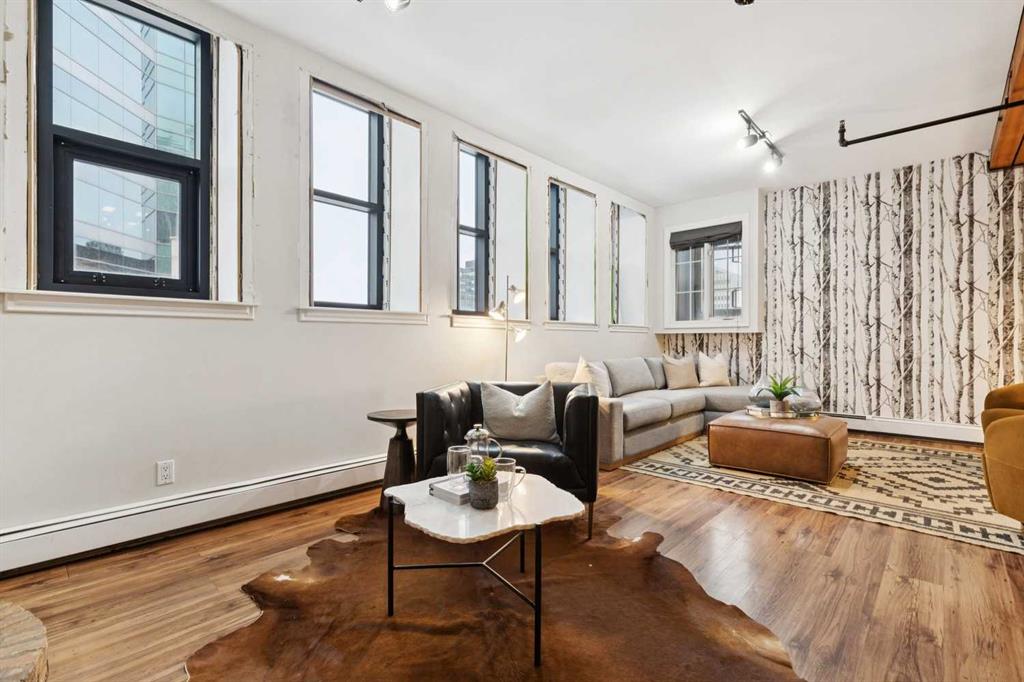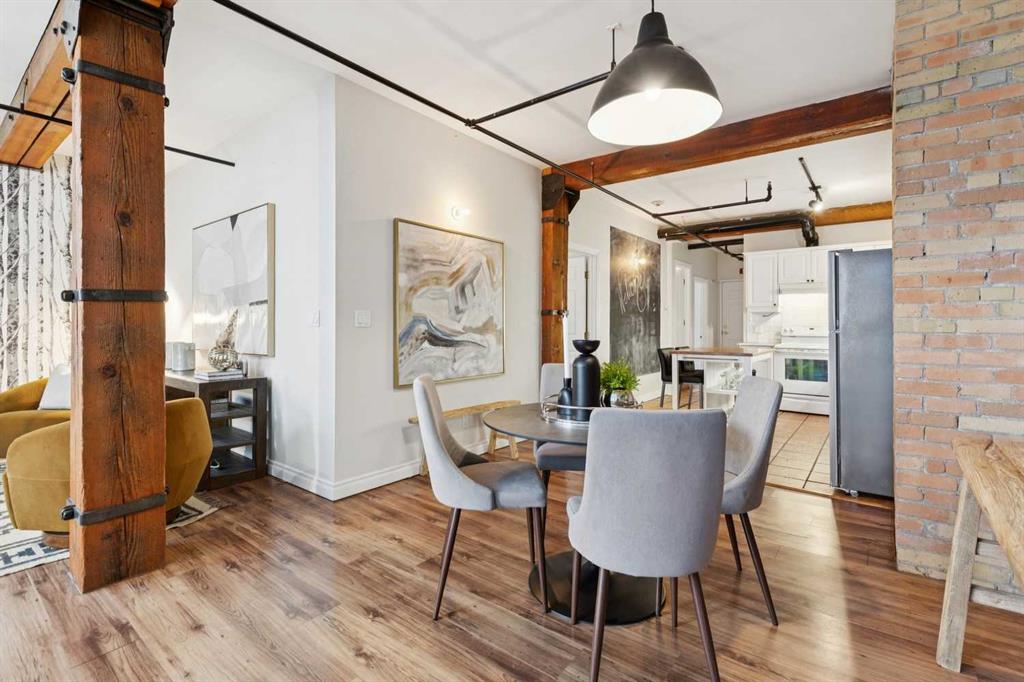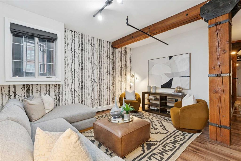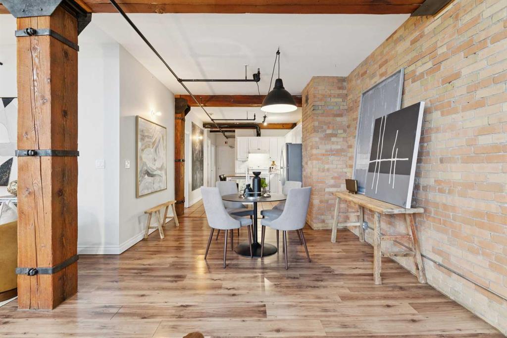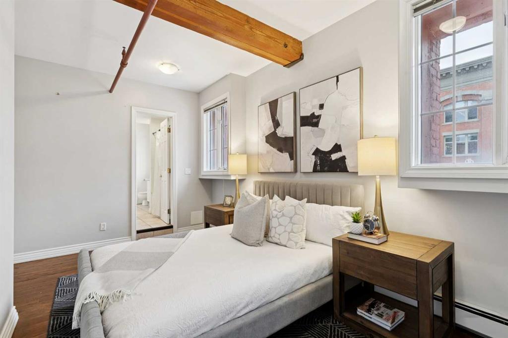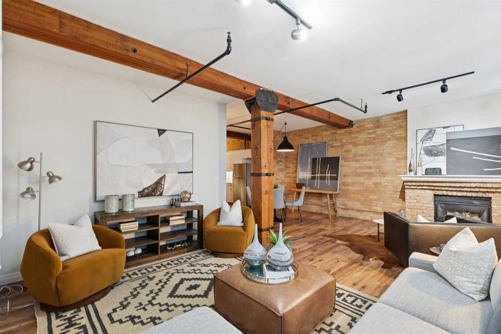 Nestled in the heart of Calgary's Beltline, this extraordinary red brick loft offers a rare opportunity to own a piece of the city’s rich history. Constructed in 1912 for the Imperial Tobacco Company by the renowned A. Dale and Associates, the architectural firm behind the iconic Calgary Tower, this building underwent a stunning conversion to lofts in 1995. For the first time ever, these timeless residences are available for sale, blending historical charm with modern sophistication. Offering over 1,100 SqFt, this expansive loft exudes character with its original brick walls, exposed wood beams, and soaring ceilings. A wall of windows floods the space with natural light, creating a warm and inviting ambiance reminiscent of a classic New York City loft. The open-concept layout is thoughtfully designed, offering endless possibilities for both living and working. A private den provides the perfect space for a home or business office, while two generously sized bedrooms are complemented by a five-piece Jack and Jill bathroom plus there is an additional three-piece bathroom. The galley-style kitchen features freshly sprayed maple cabinetry with under mount lighting, moveable island, and a seamless flow into the dining and living areas. Whether you envision this space as your personal sanctuary or a dynamic live/work environment, the possibilities are as limitless as your imagination. Beyond the loft itself, the building offers an array of amenities, including a gym, a games room, and a rooftop patio with breathtaking views of the Downtown Skyline. A titled underground parking spot is also included, ensuring convenience in this vibrant urban setting. This is more than a home; it’s a lifestyle. A rare blend of history, elegance, and modernity, this loft is a once-in-a-lifetime opportunity to own a truly unique piece of Calgary’s architectural heritage.