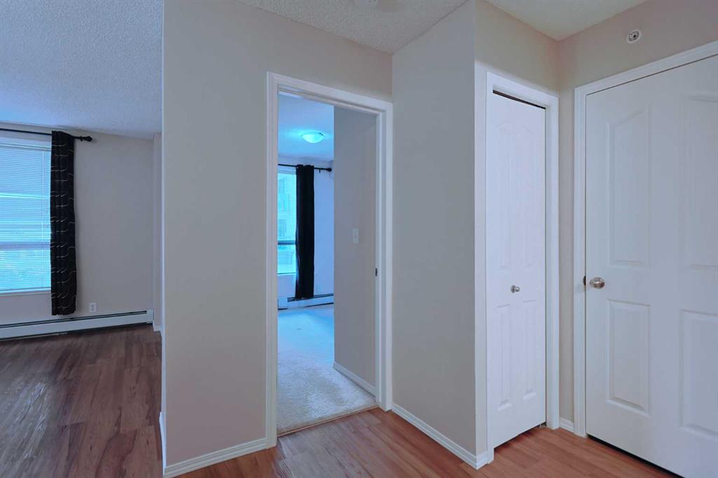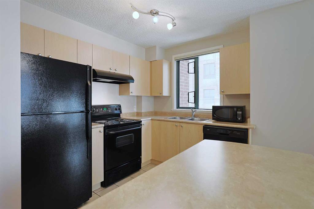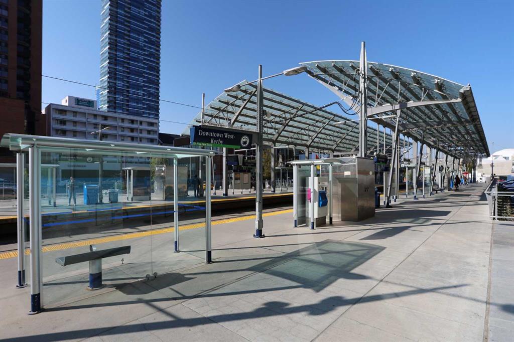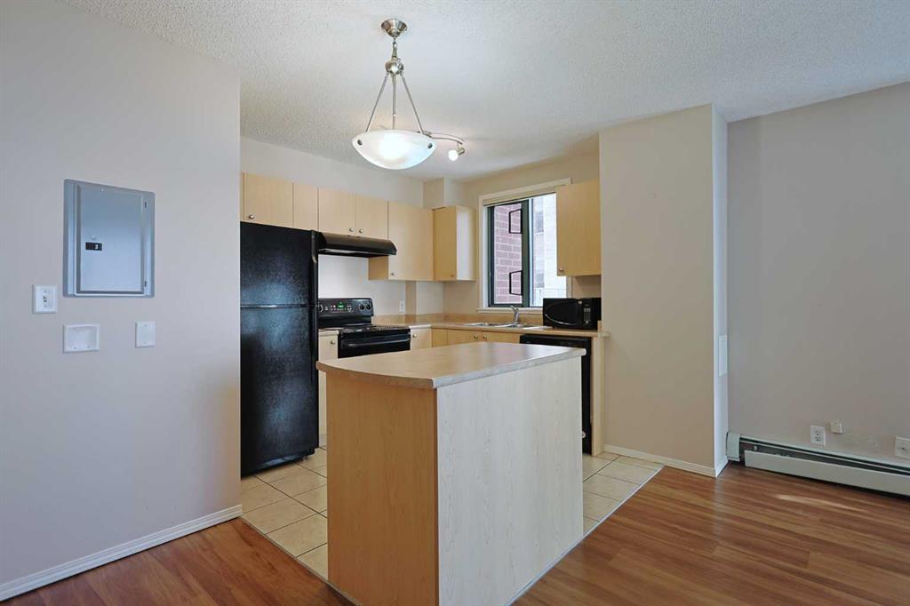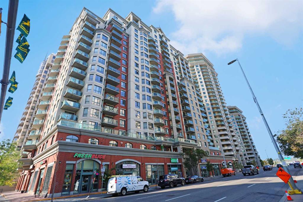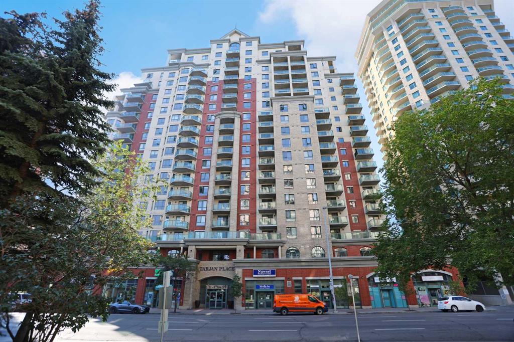 Welcome TARJAN PLACE & this terrific 1 bedroom condo in this popular concrete high-rise located in Downtown West End just steps to the Downtown West-Kerby LRT station, Cowboys Park & the Bow River pathway system. Available for quick possession, this 3rd floor end unit enjoys vinyl plank floors & open concept floorplan, 1 full bath, titled underground parking stall & residents amenities include fitness centre & onsite concierge. Maintenance-free living in this great-sized home, which features spacious kitchen with island & black appliances, large living room with big picture windows, covered balcony with gas BBQ line & insuite laundry/storage room with space-saving GE washer/dryer. The bedroom is an excellent size & is has a big closet. The bathroom has tile floors & shower/tub combo. Monthly condo fees in this 20-storey tower include heat, water-sewer & electricity, plus this pet-friendly building (with board approval) also has a concierge, bike storage & gym. The perfect home for the first-time homeowner or an investment, in this top-notch location with all the conveniences of urban living at your doorstep…shopping & restaurants, Kensington, transit & downtown!